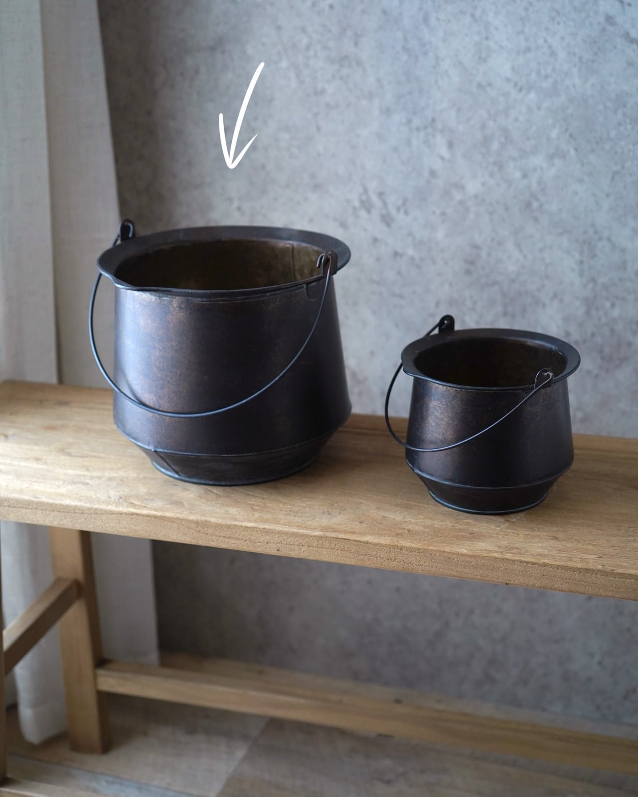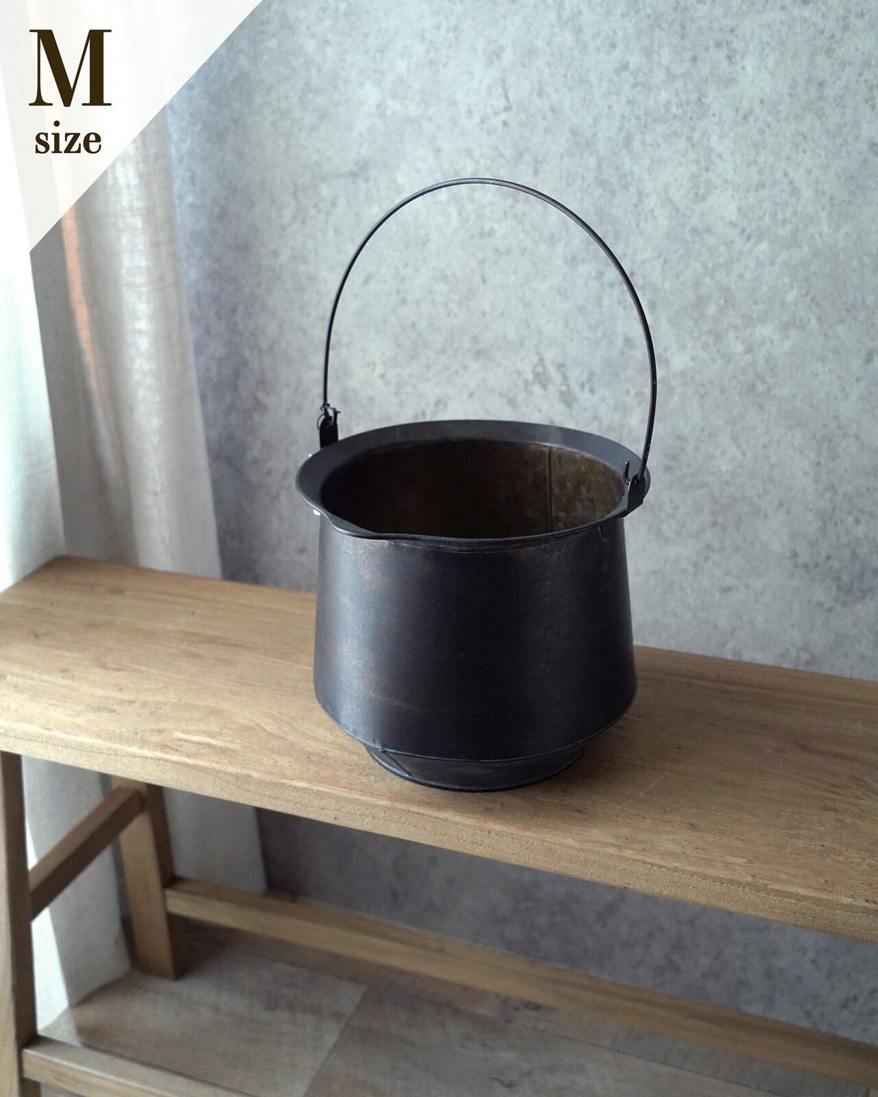 シンプルなバケツ型で、花、観葉植物なんにでも合う万能の器です。