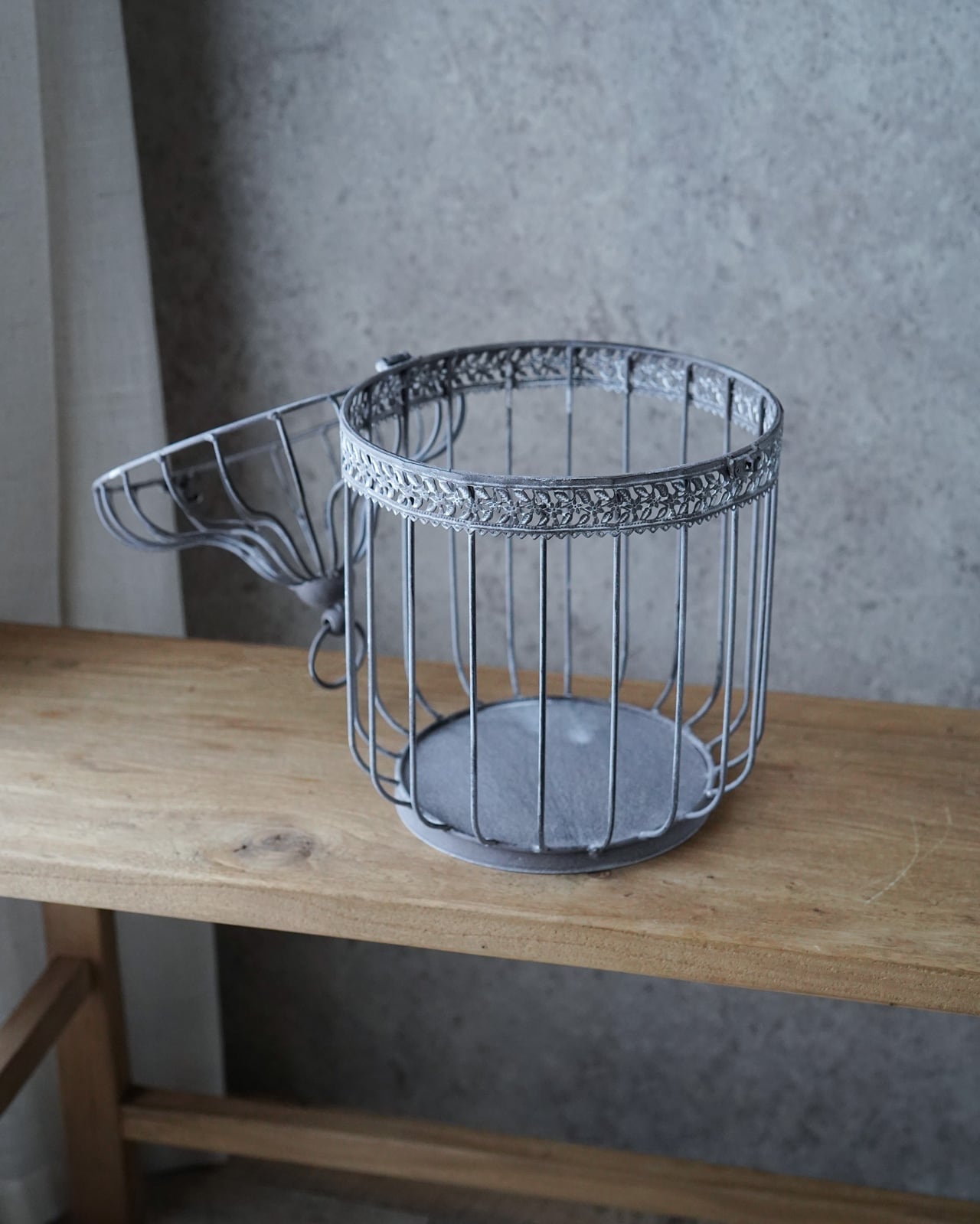 他の鳥籠と一味違う、底がすぼまった形状がおしゃれな品です。