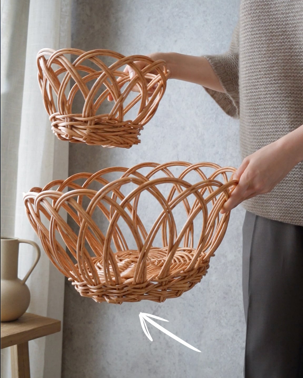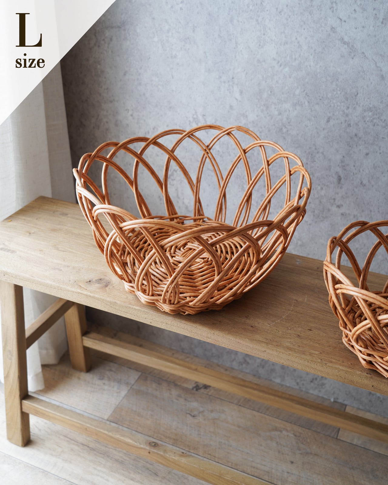 ラタンを模した「ポリプロピレン製」のバスケット。