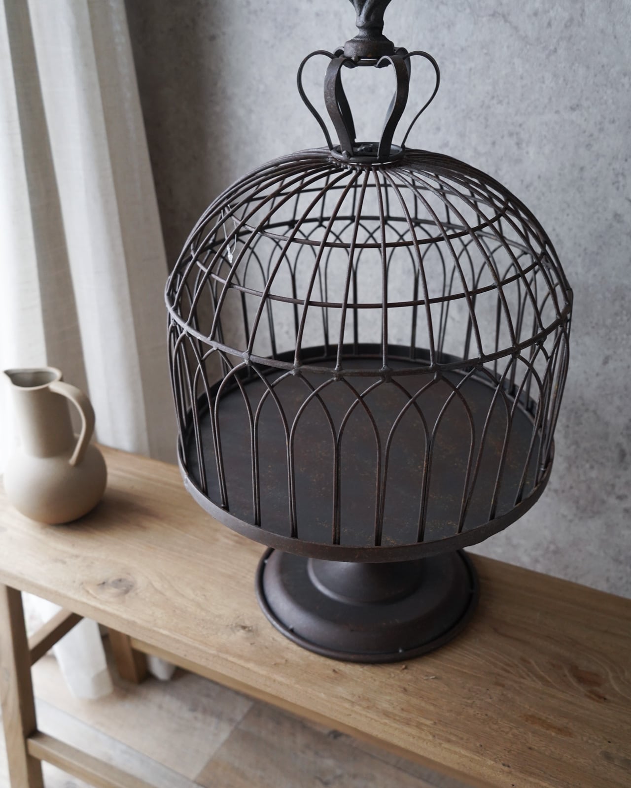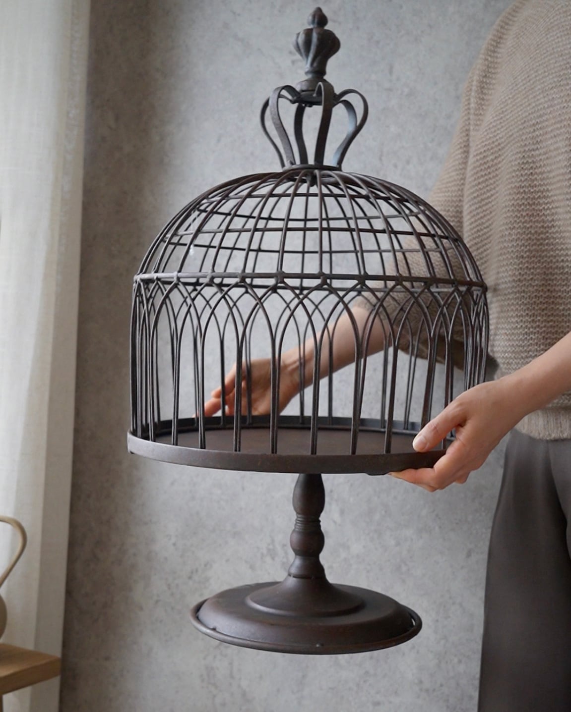 植物を載せてカバーを被せるコンポート型のガーデンアイテム。