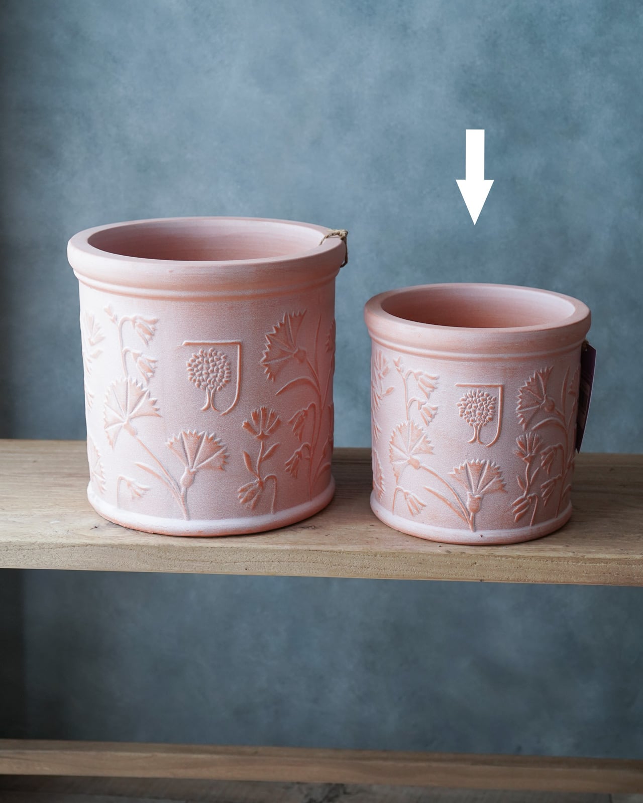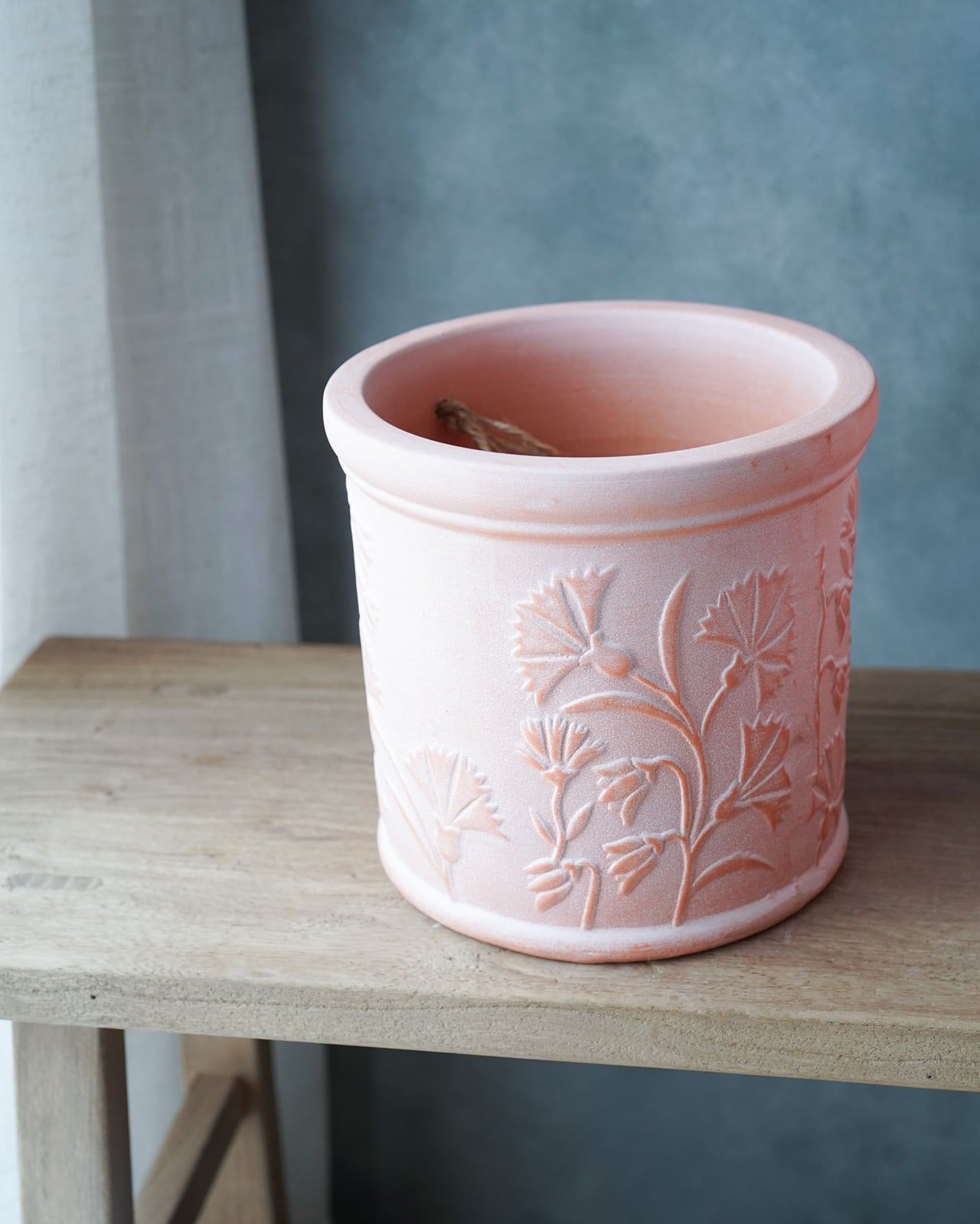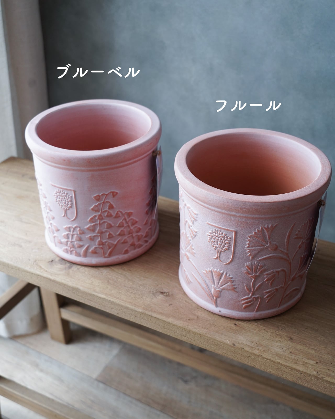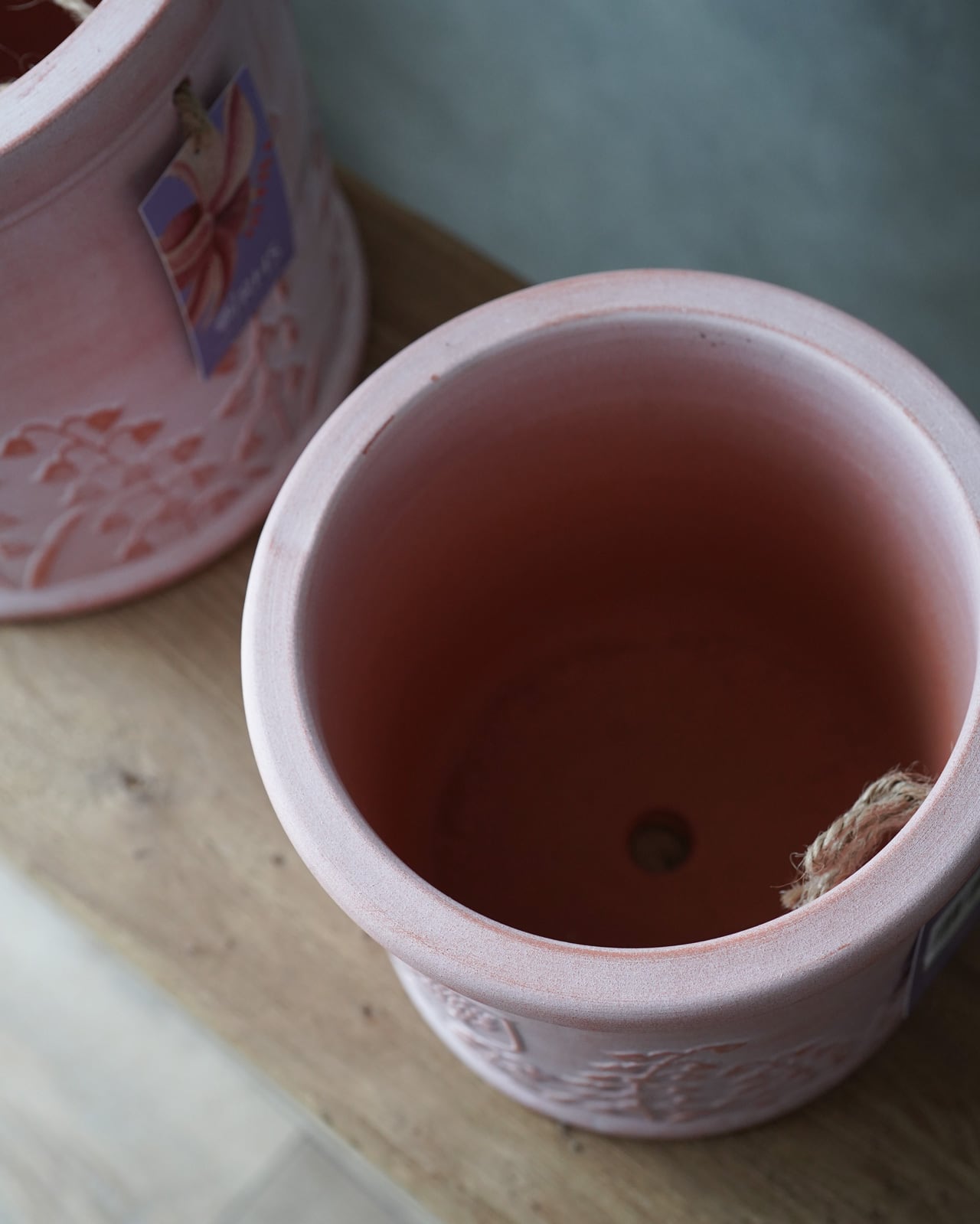 テラコッタに白いウォッシュ加工を施してあり、色はややピンクみを帯びたテラコッタ色。