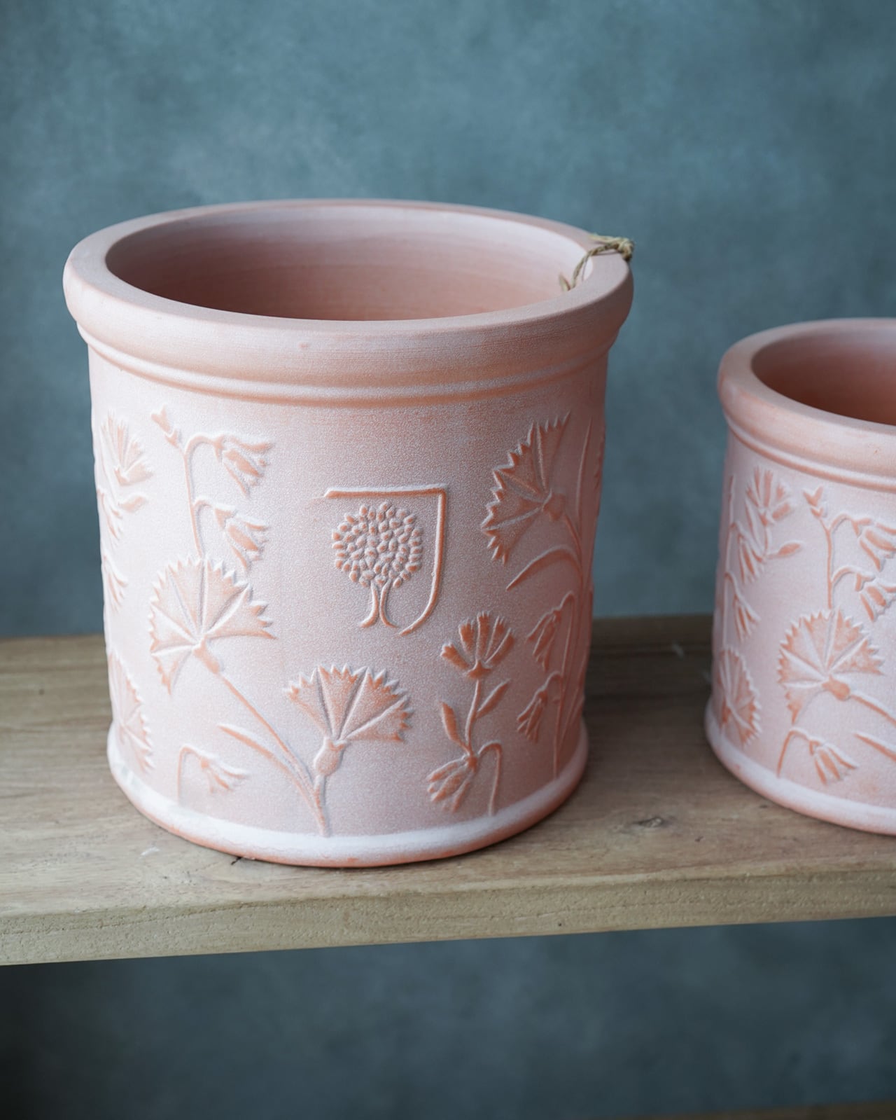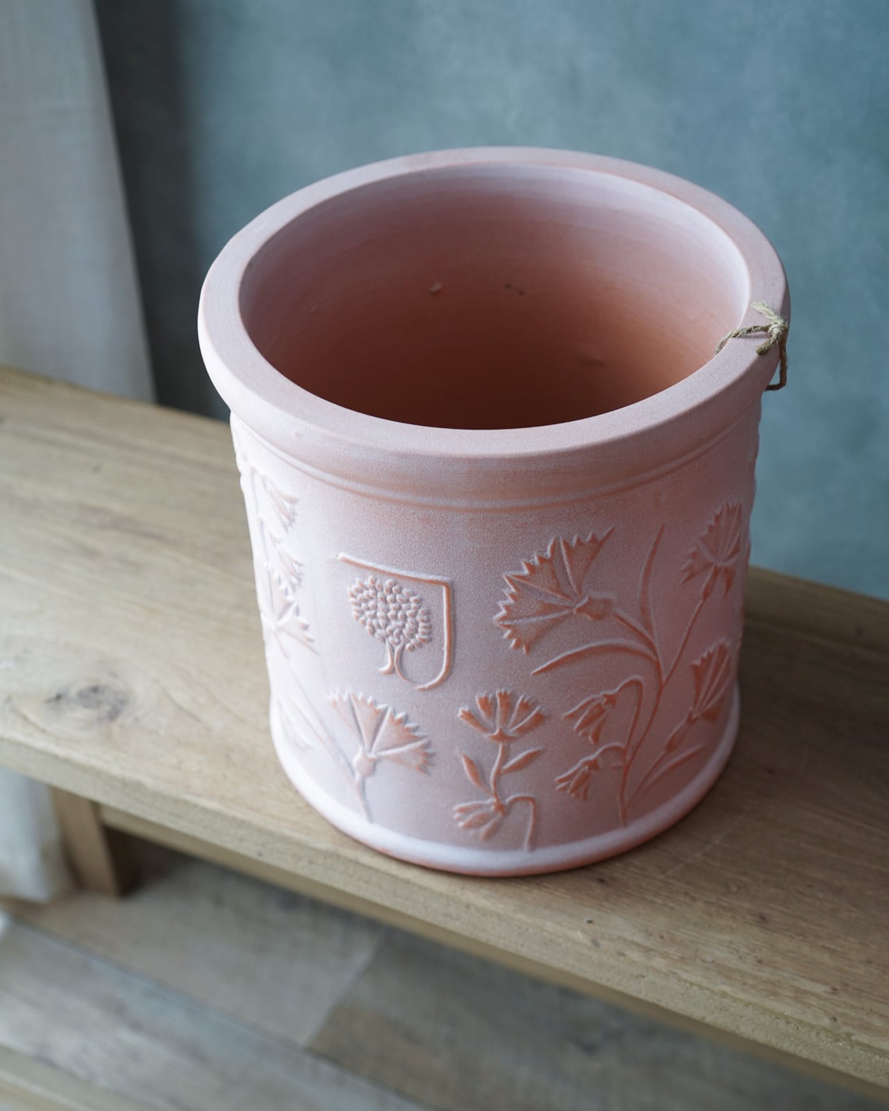 テラコッタに白いウォッシュ加工を施してあり、色はややピンクみを帯びたテラコッタ色。