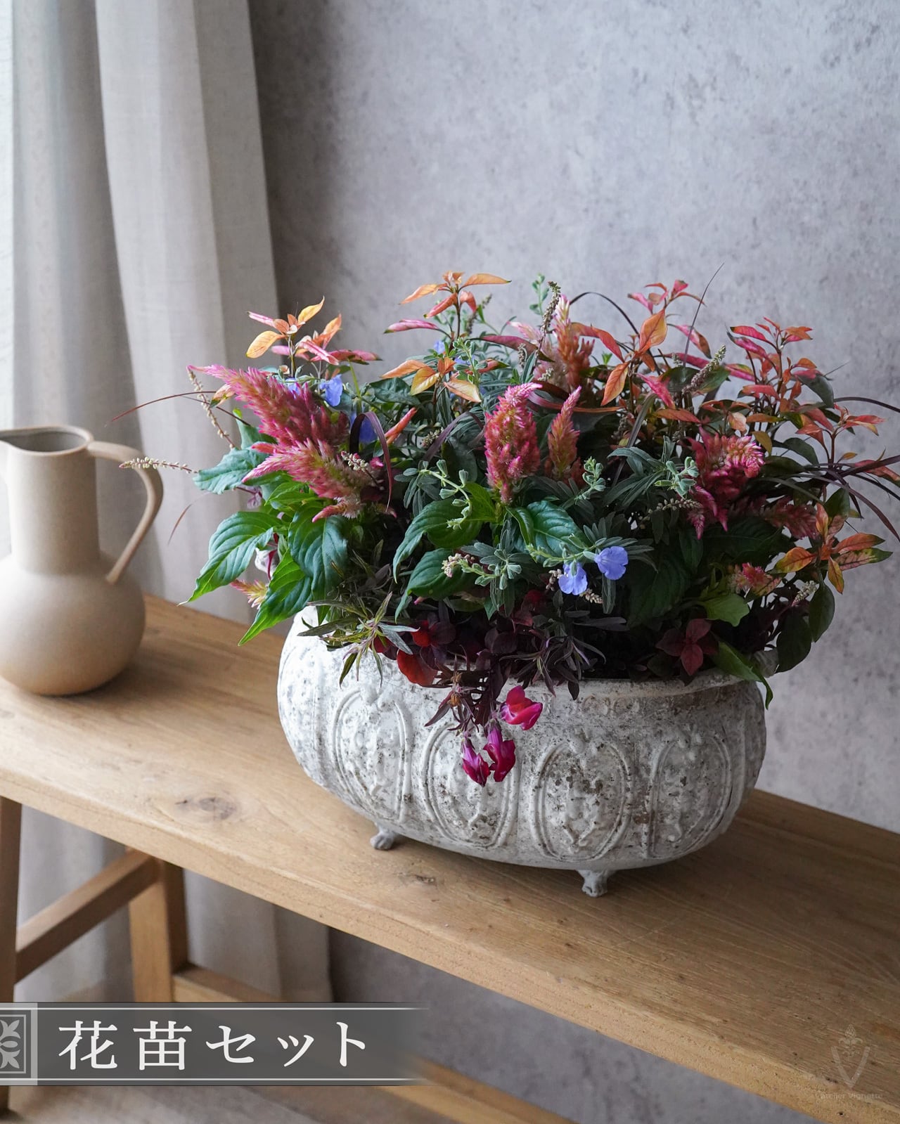 セロシア(ケイトウ)4ポットをメインに冬まで咲く秋のお花とカラーリーフの苗セット。