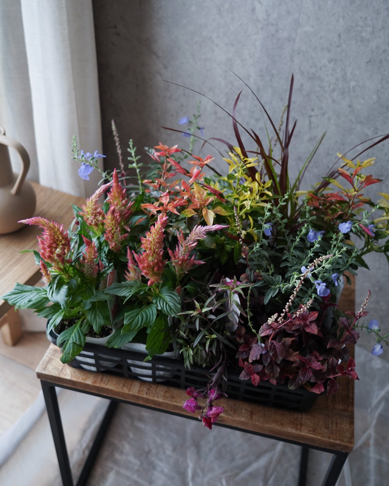 長く秋色を楽しめる、植え込みしやすい花材を揃えました。