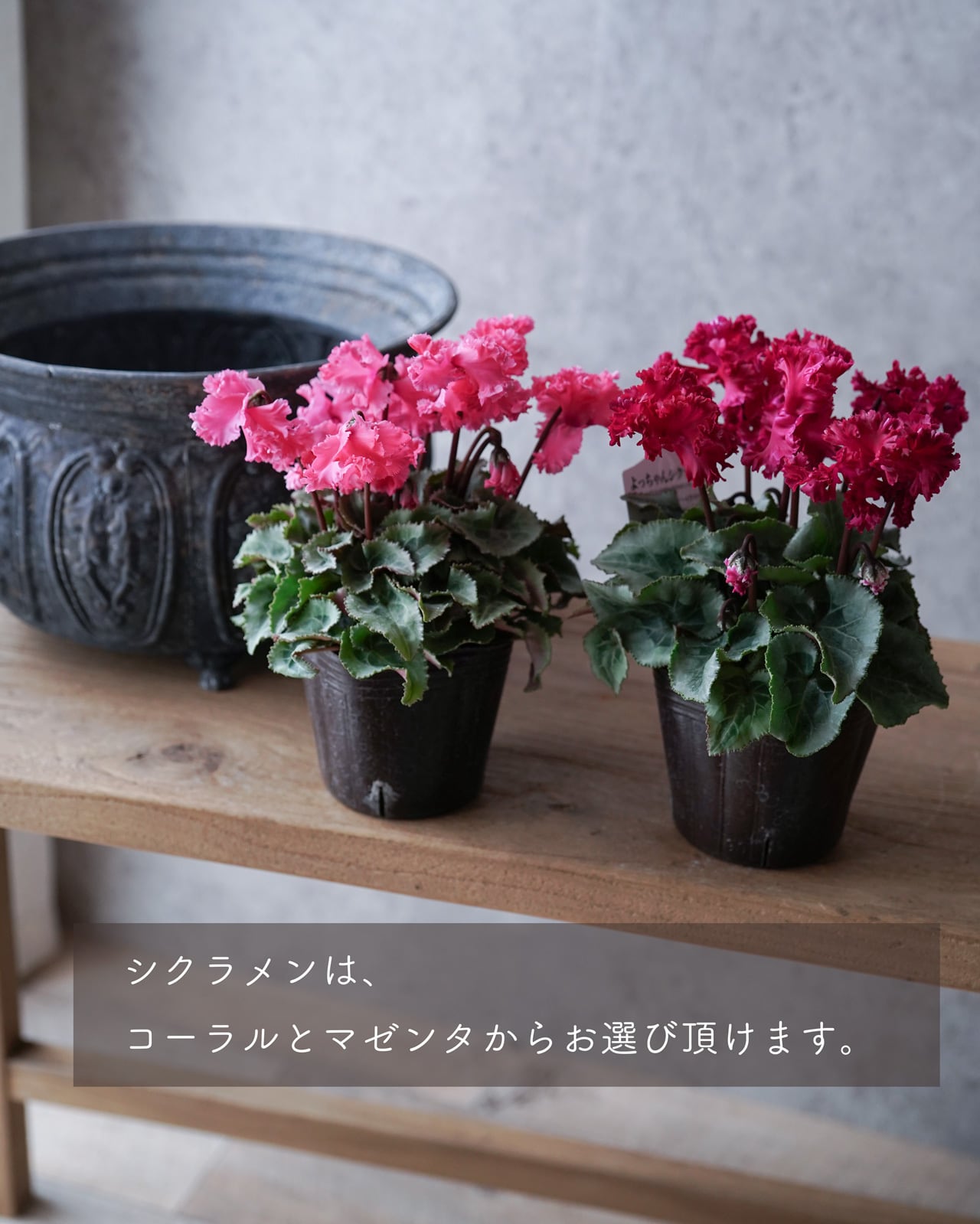 球根と株元にお水をかけてはいけないシクラメンの性質に合わせて、リーフもののみ束ねて植えることをお勧めします。