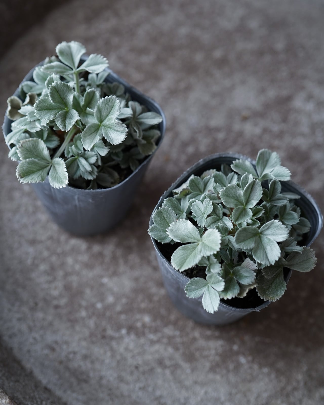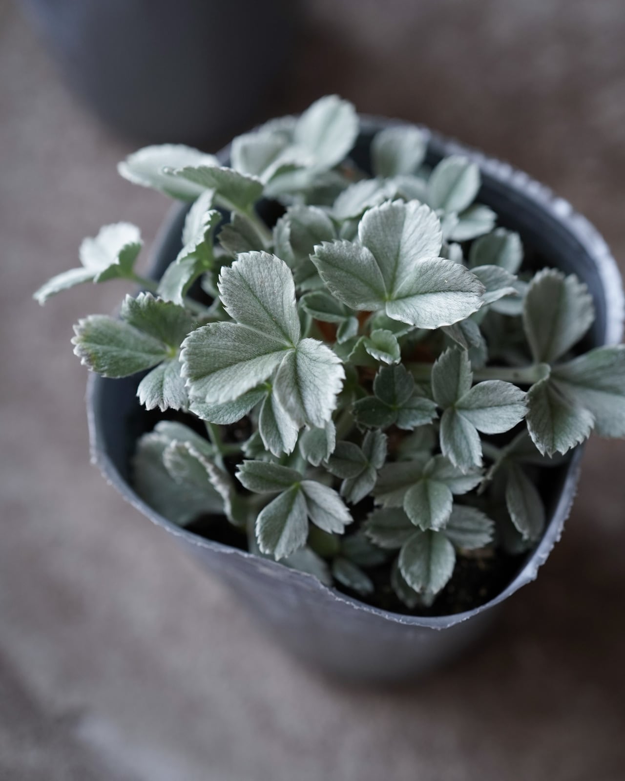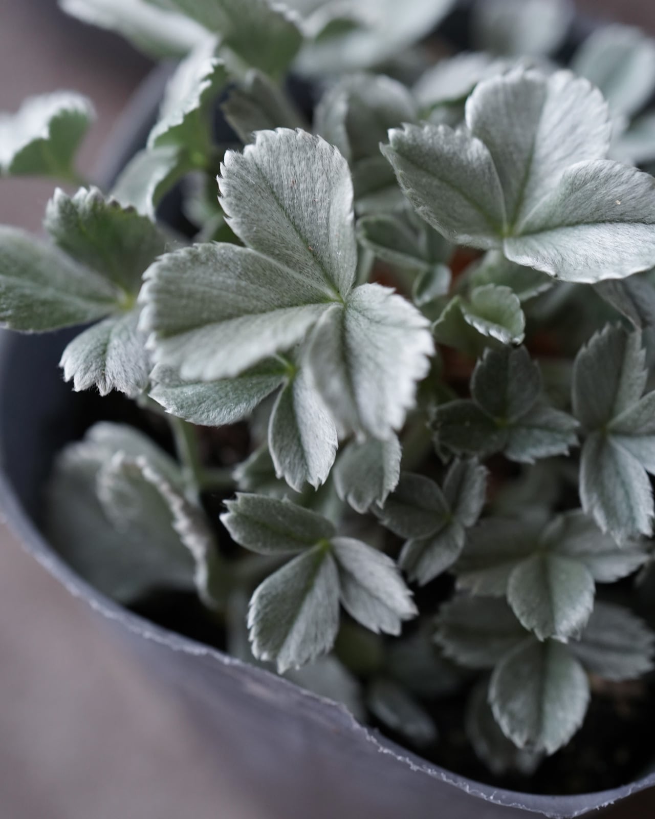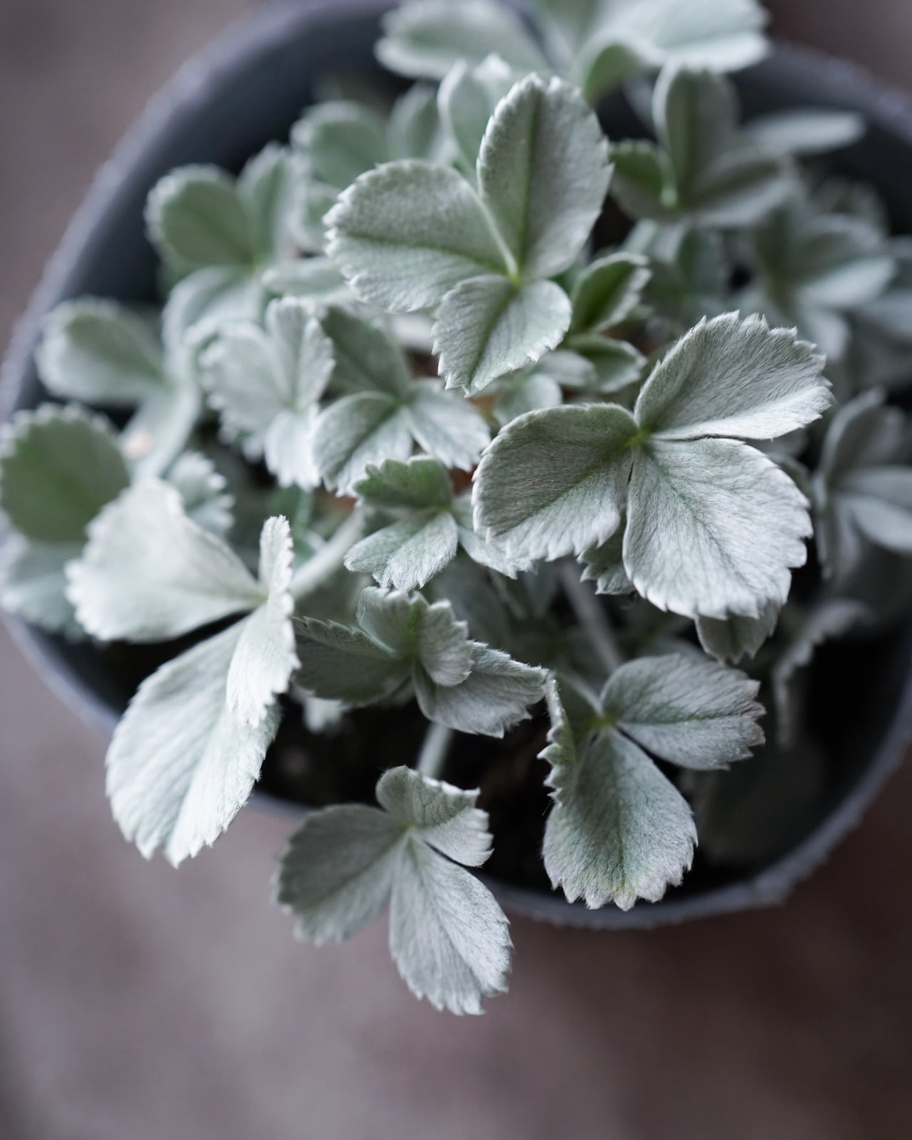銀色の綿毛に覆われたウーリーな葉はとても柔らかく、光が当たると輝いているように見えます。寒さ、暑さに強く丈夫な品種。