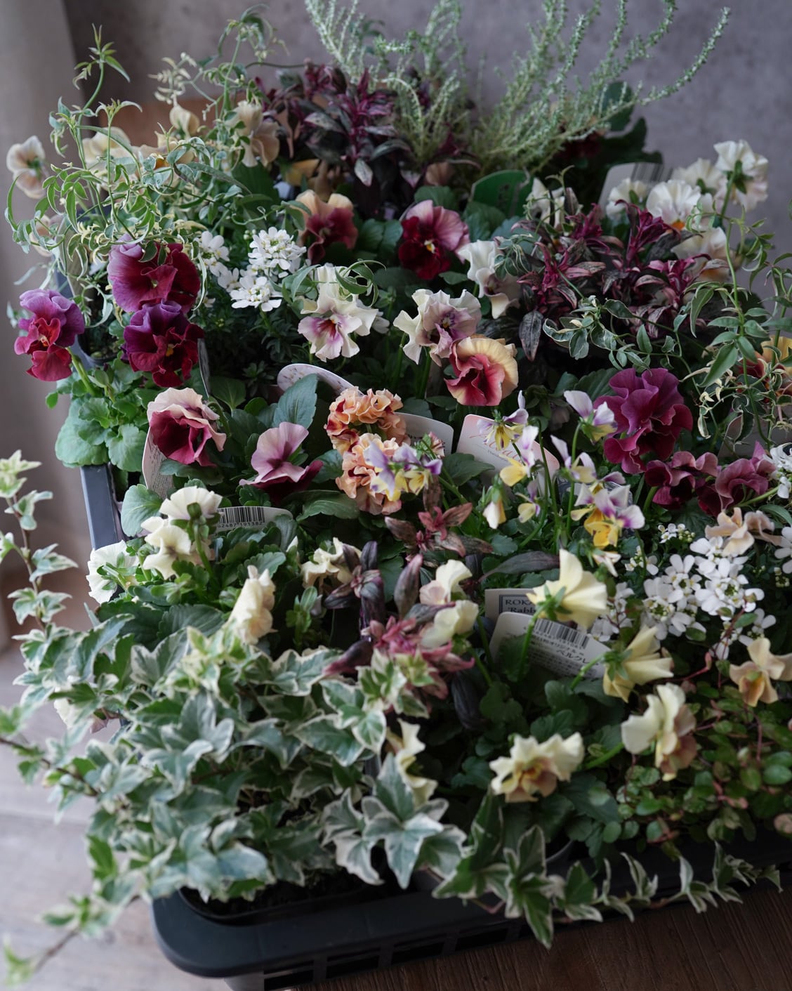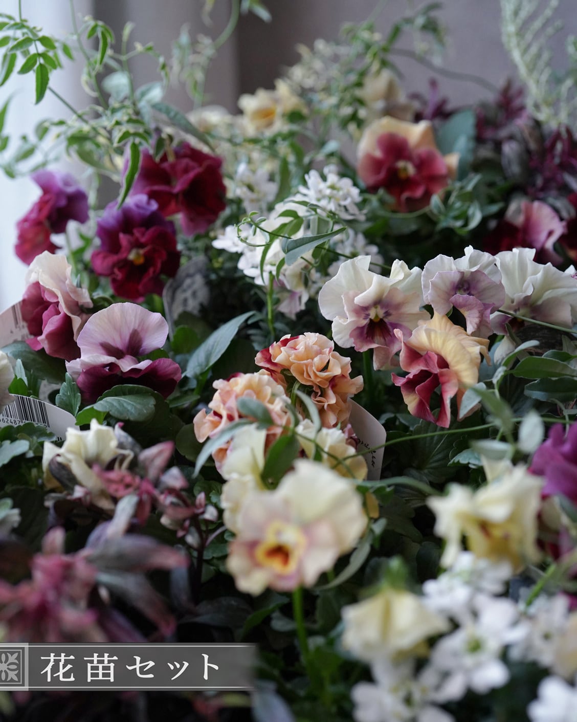 ビオラパンジー 15ポット +リーフ類の、大型作品用・花苗セットです。
