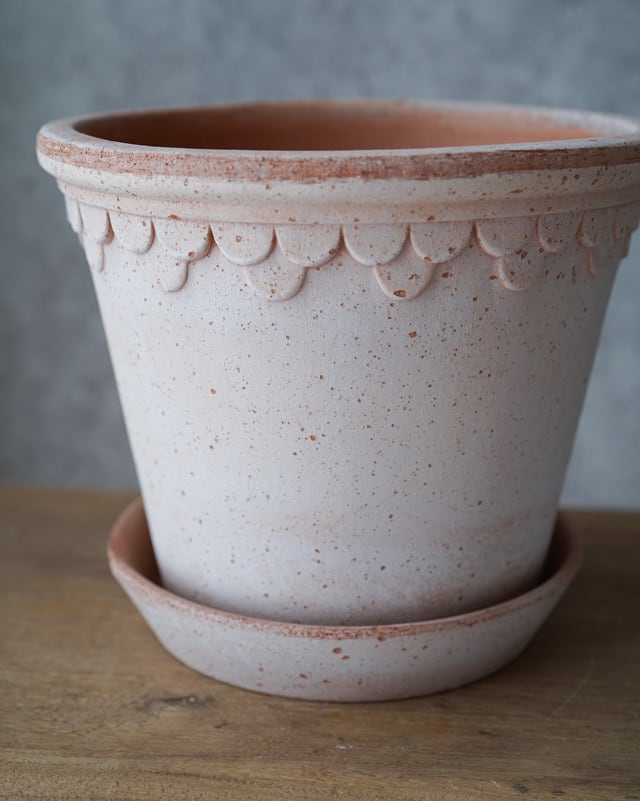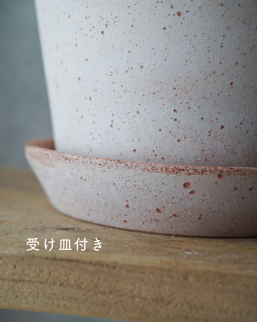 受け皿がセットになった、バーグスポッターの植木鉢。