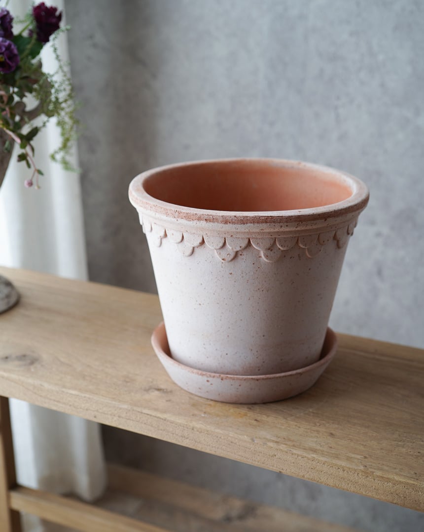 根の呼吸にも優しく、植物の成長を助けるよう計算されて作られた素焼き鉢です。
