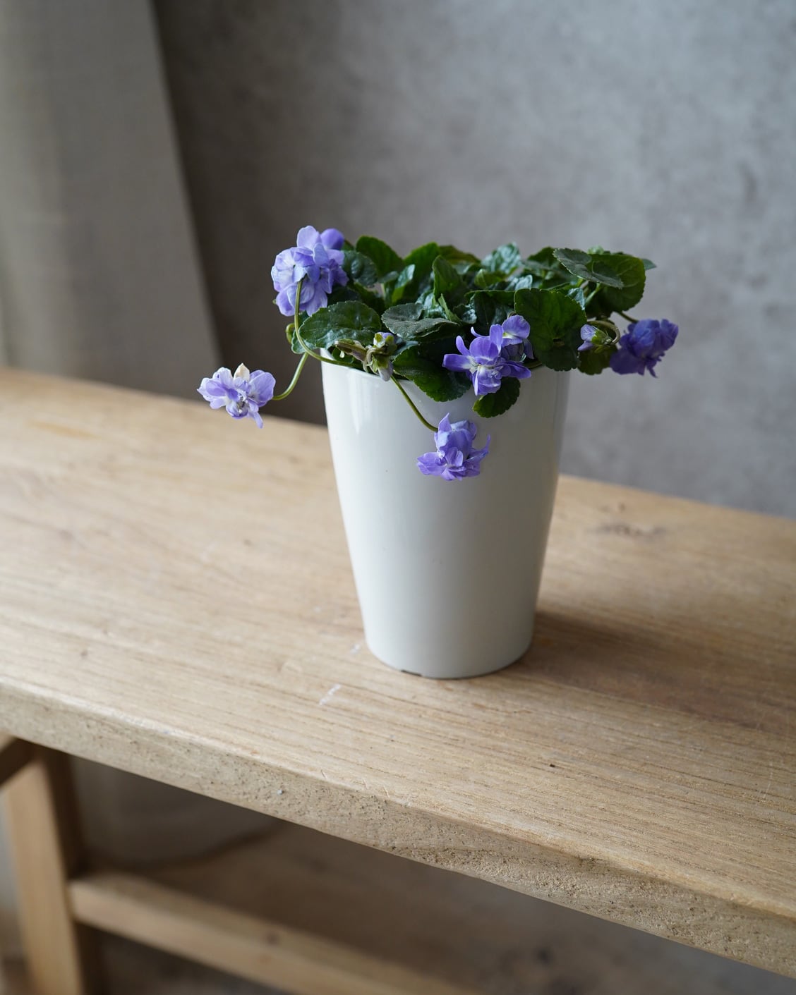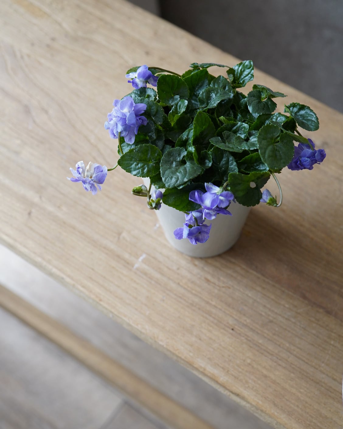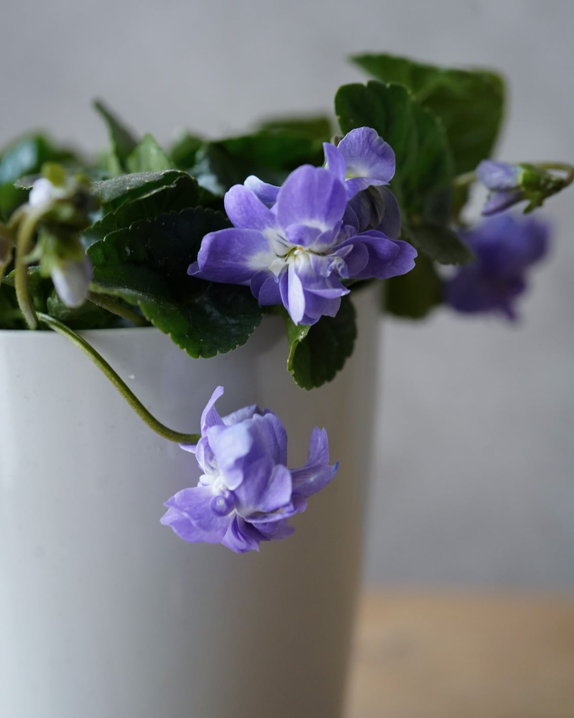 八重咲きの花が垂れ下がるように咲くスミレ。