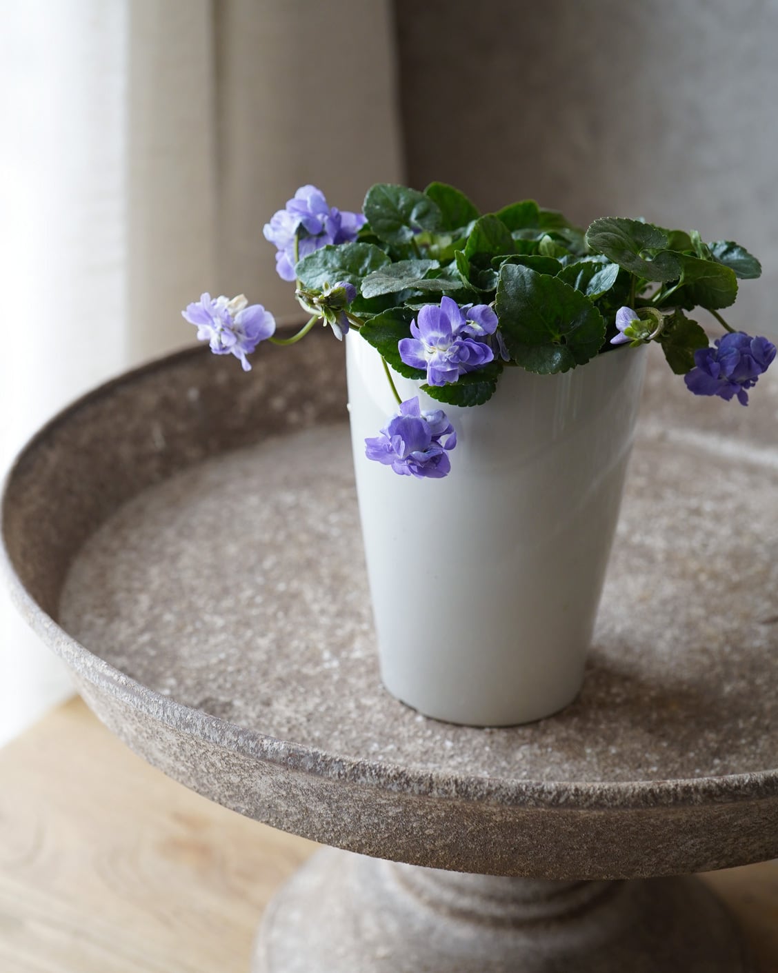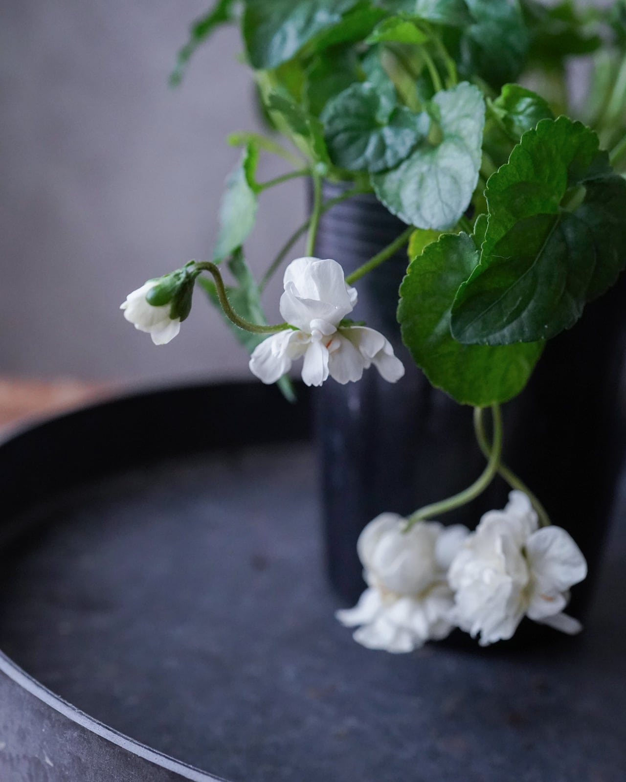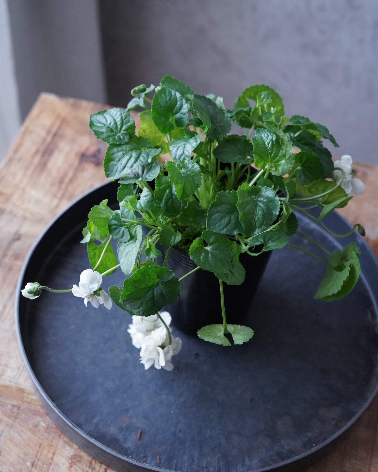 八重咲きの花が垂れ下がるように咲くスミレ。