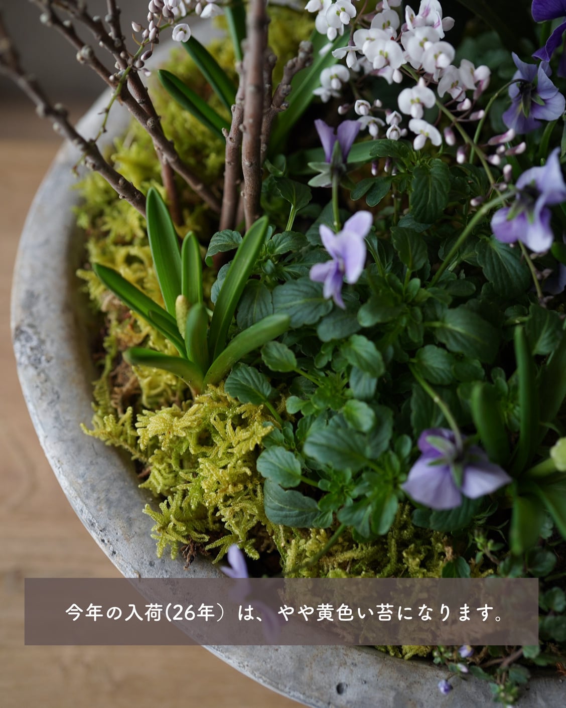 ★26年2月の入荷が、苔の色がやや黄色めです。写真1〜4枚目。