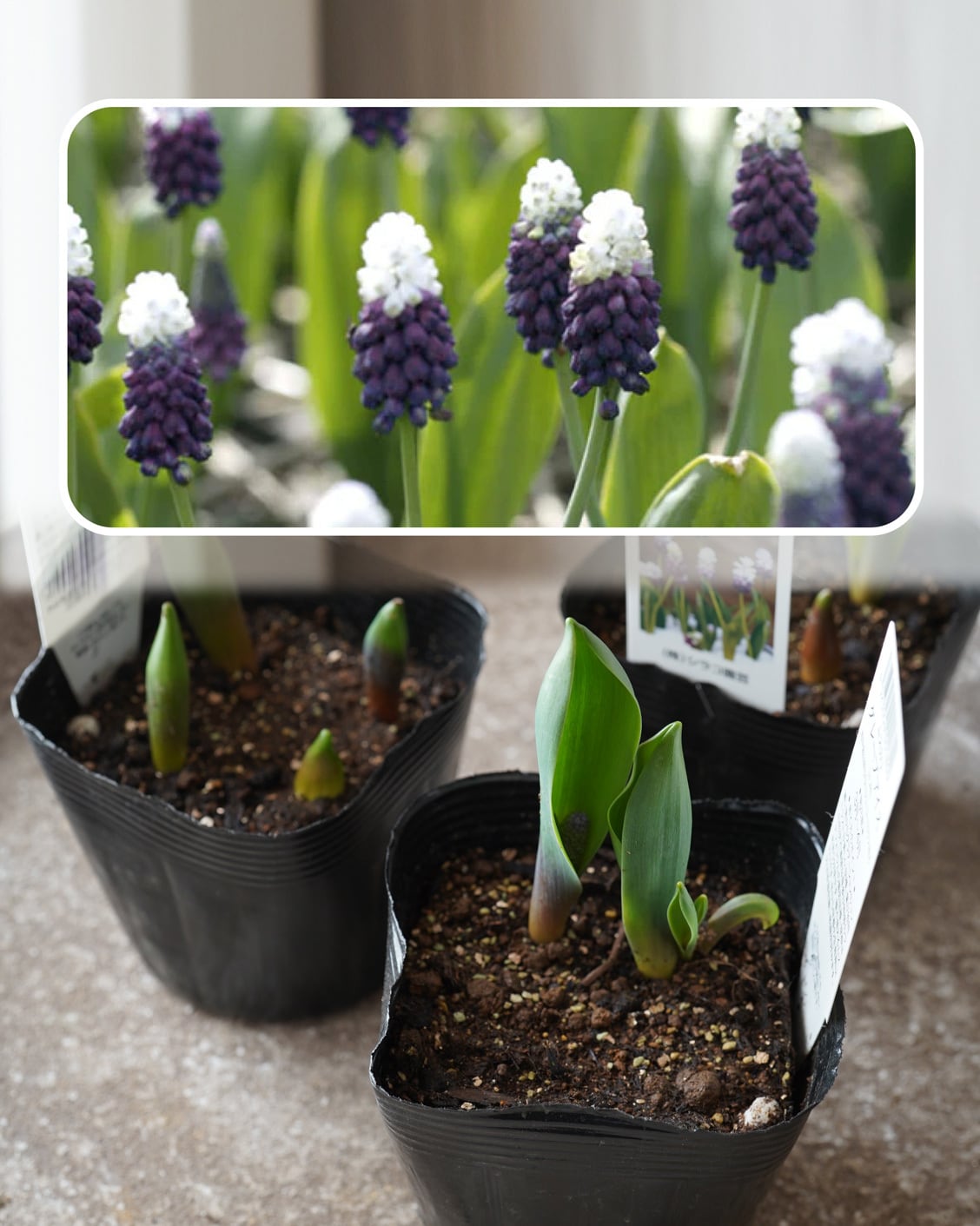 (球根)ムスカリ グレープアイス(紫×白) の4本植えです。