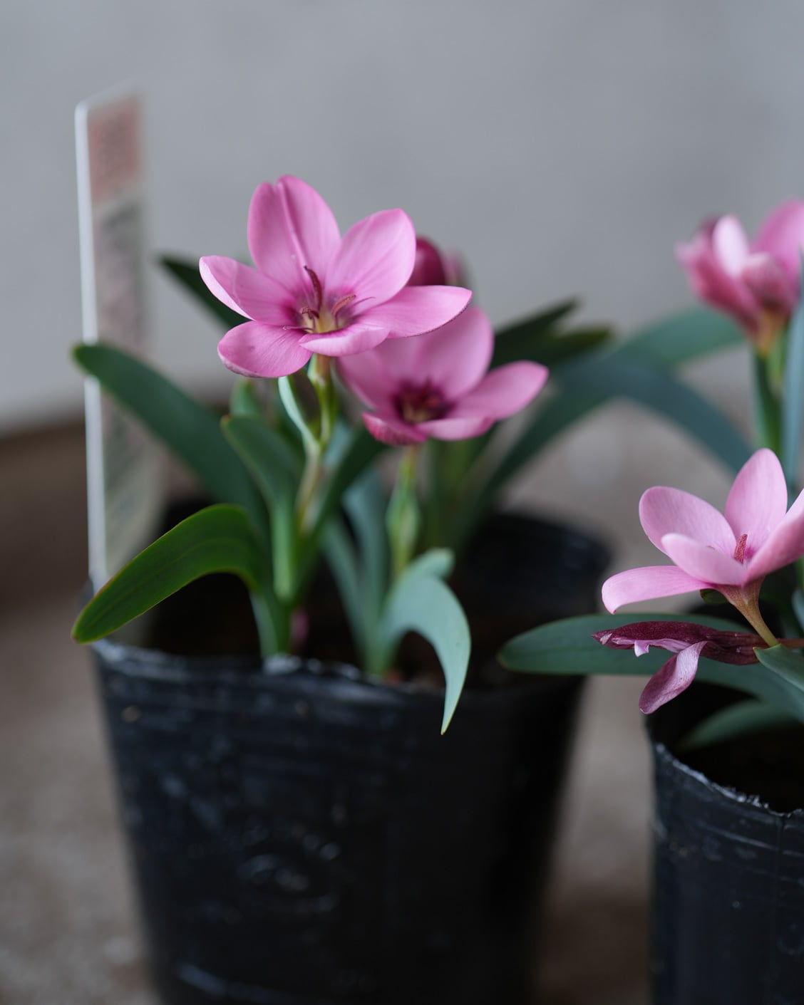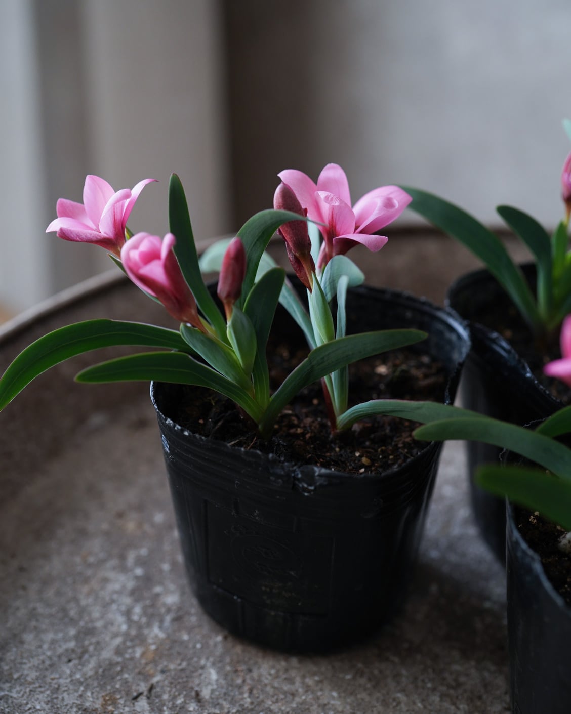 濃いピンクの小花を次々と咲かせる球根植物。