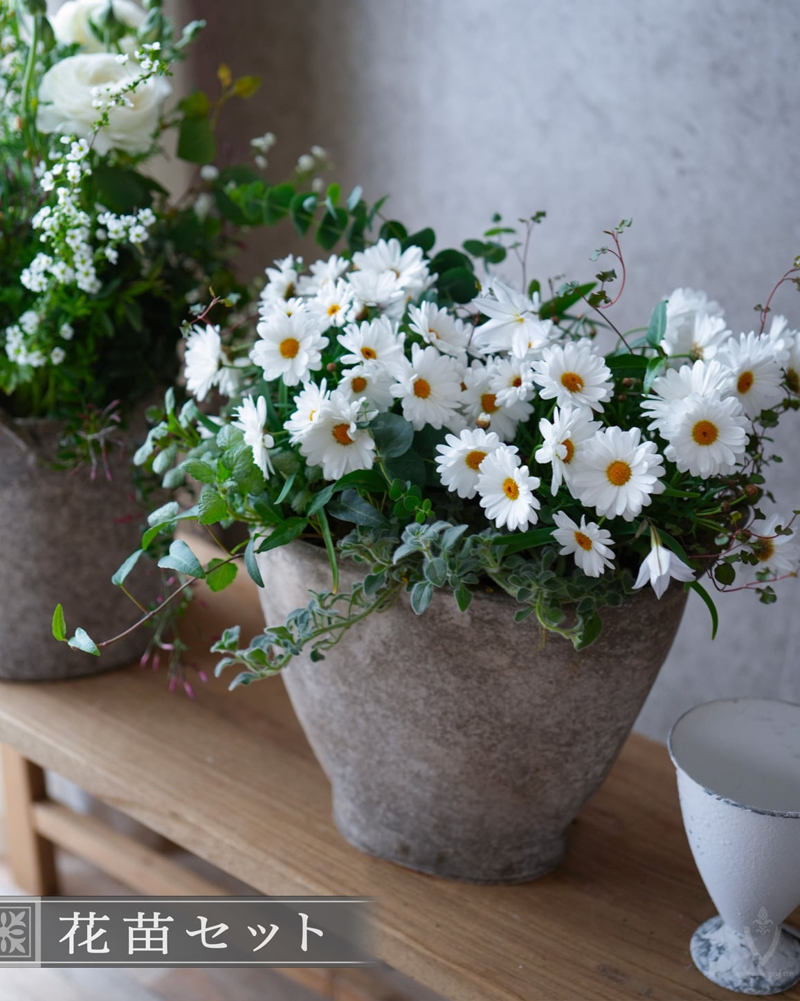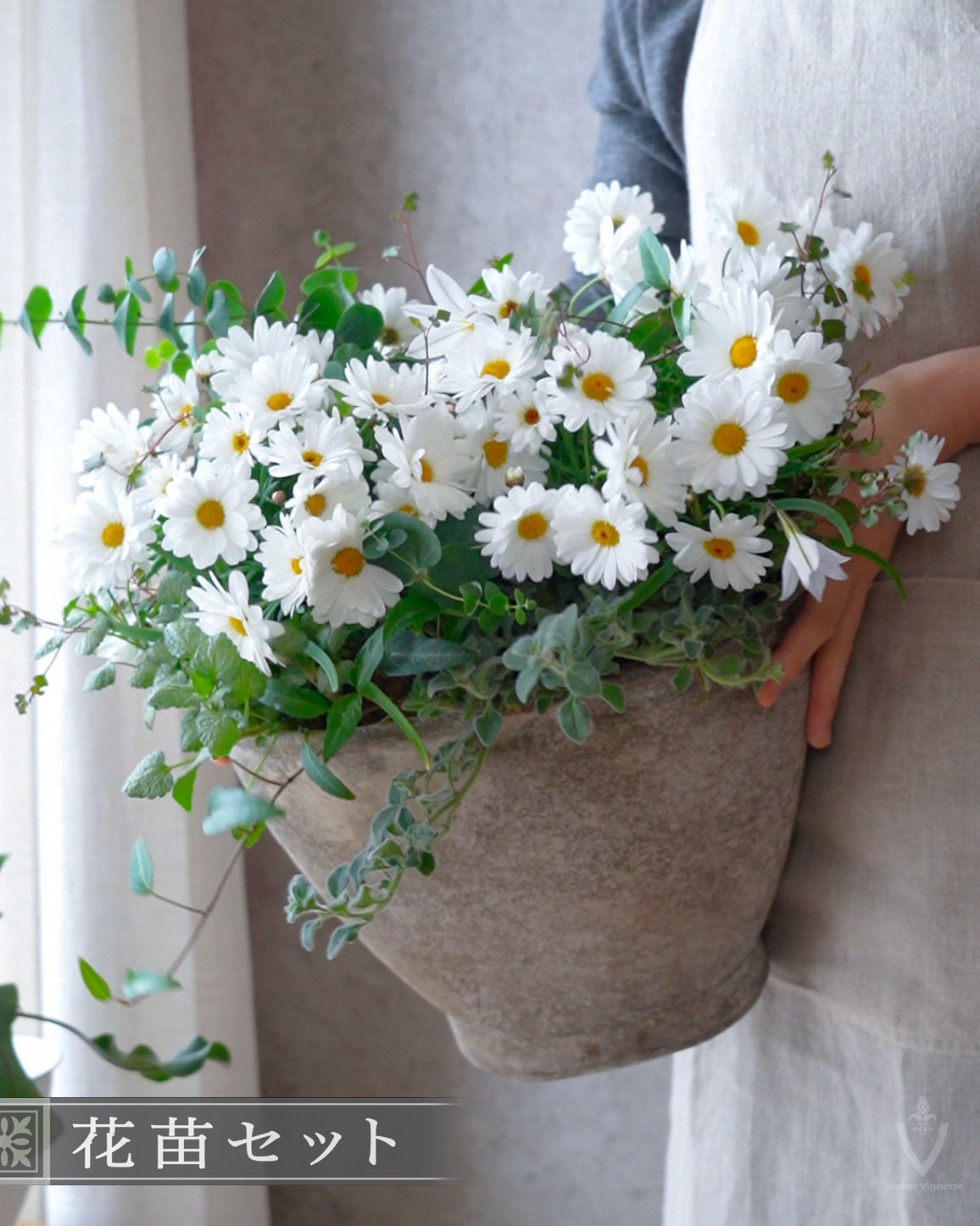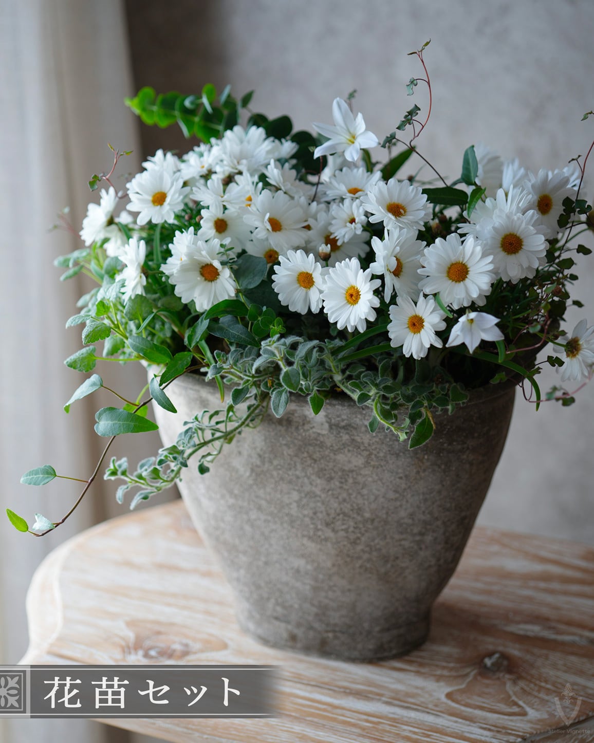 マーガレットホワイトモカの青葉リーフの、とてもシンプルな植え込みセット。