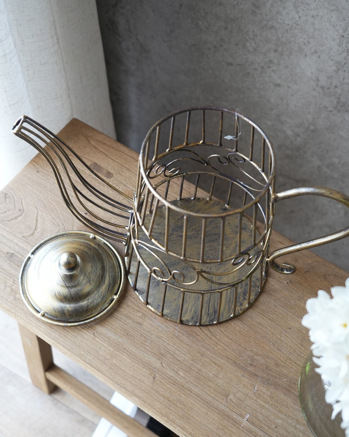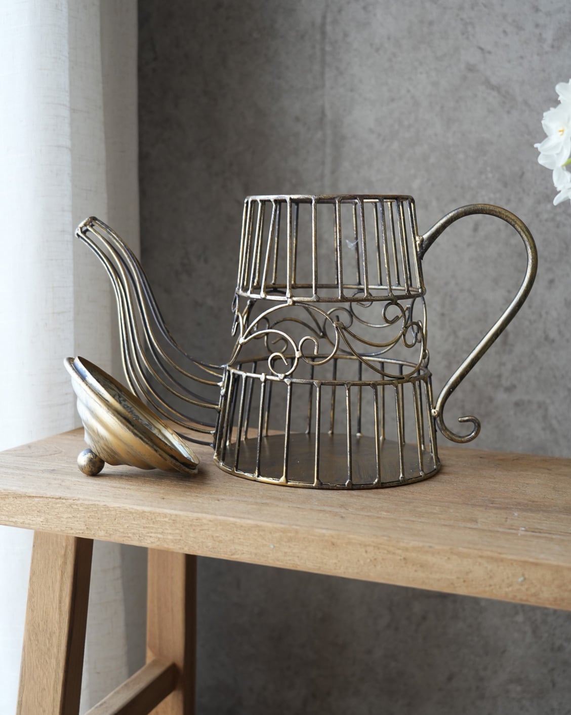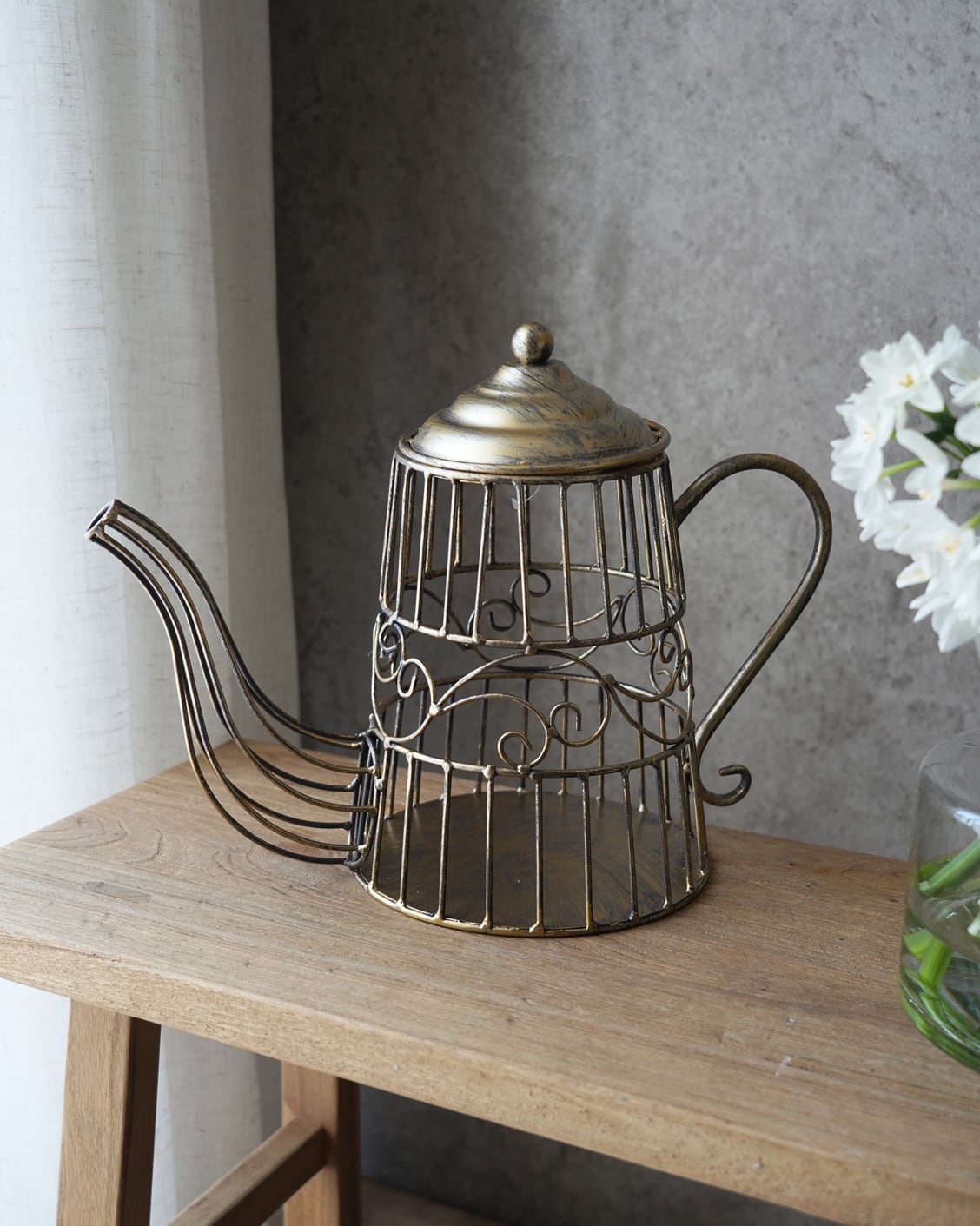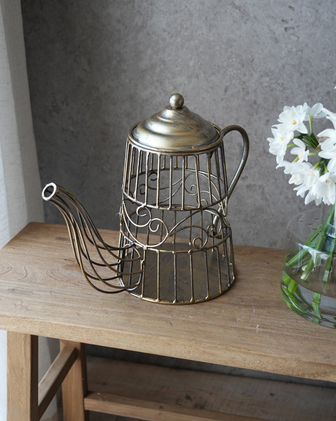 落ち着いたゴールドのティーポット型のオブジェ。