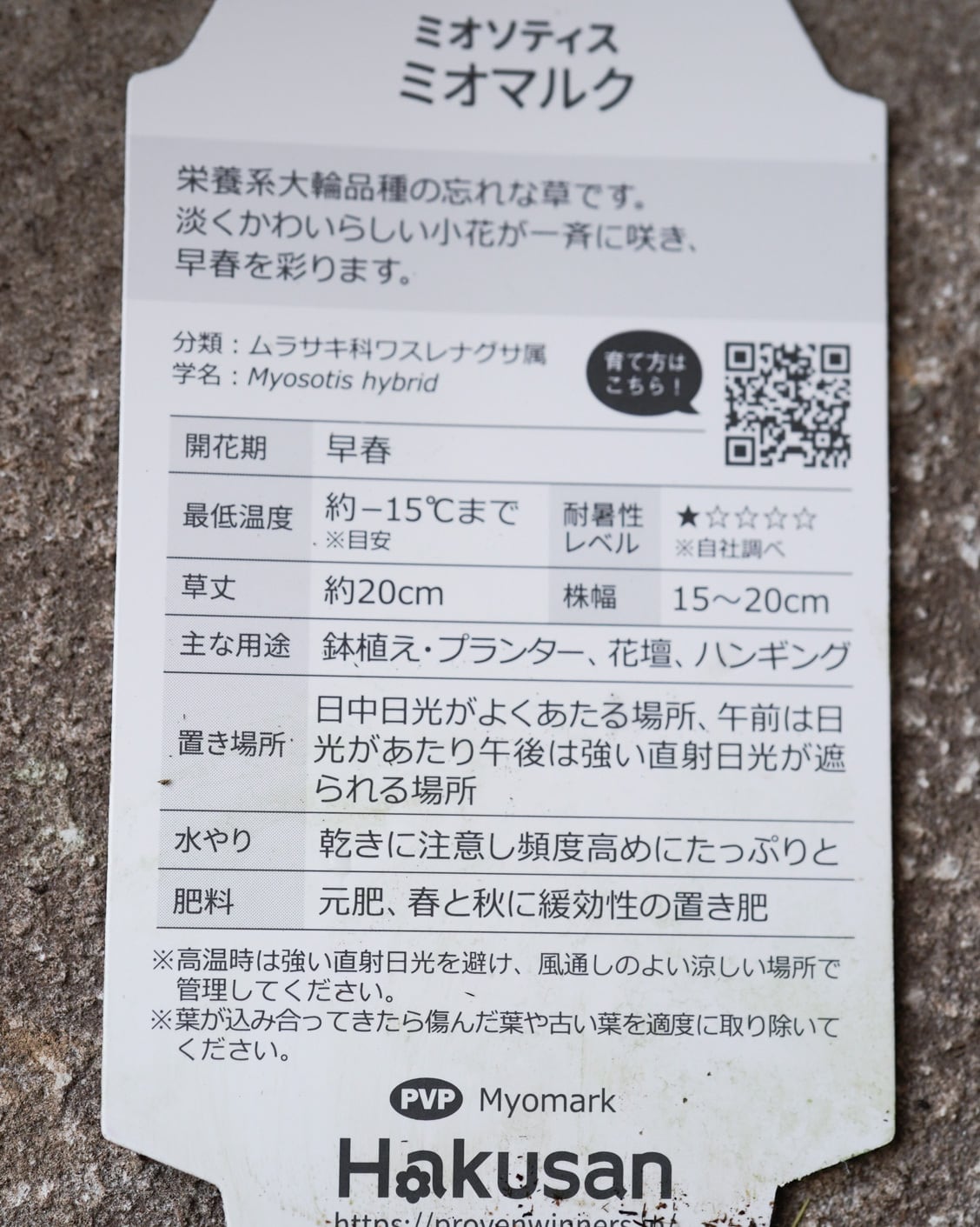 一般的なワスレナグサより大暑性に優れているにで、上手く夏越ができれば翌春も花を楽しめる宿根草です。