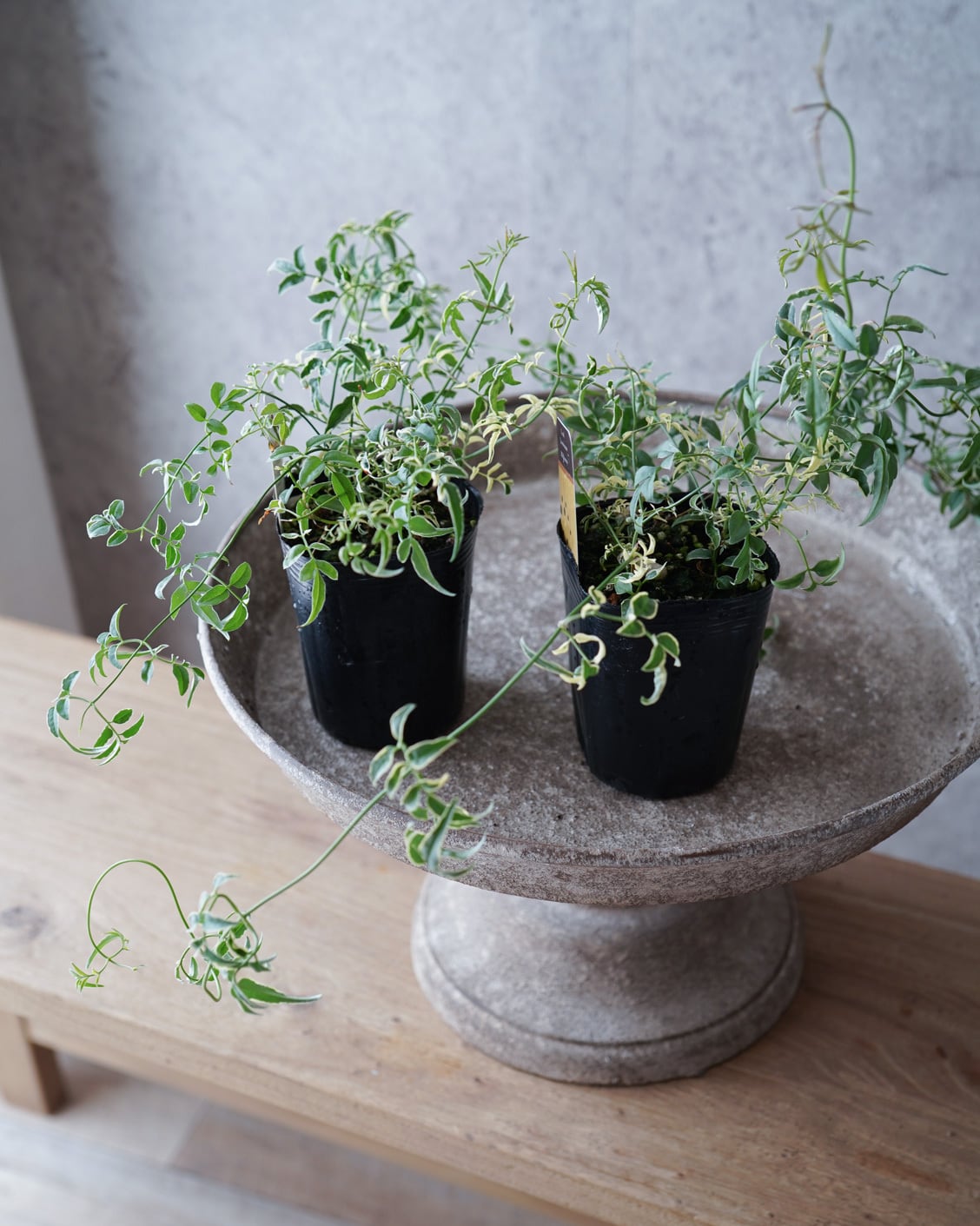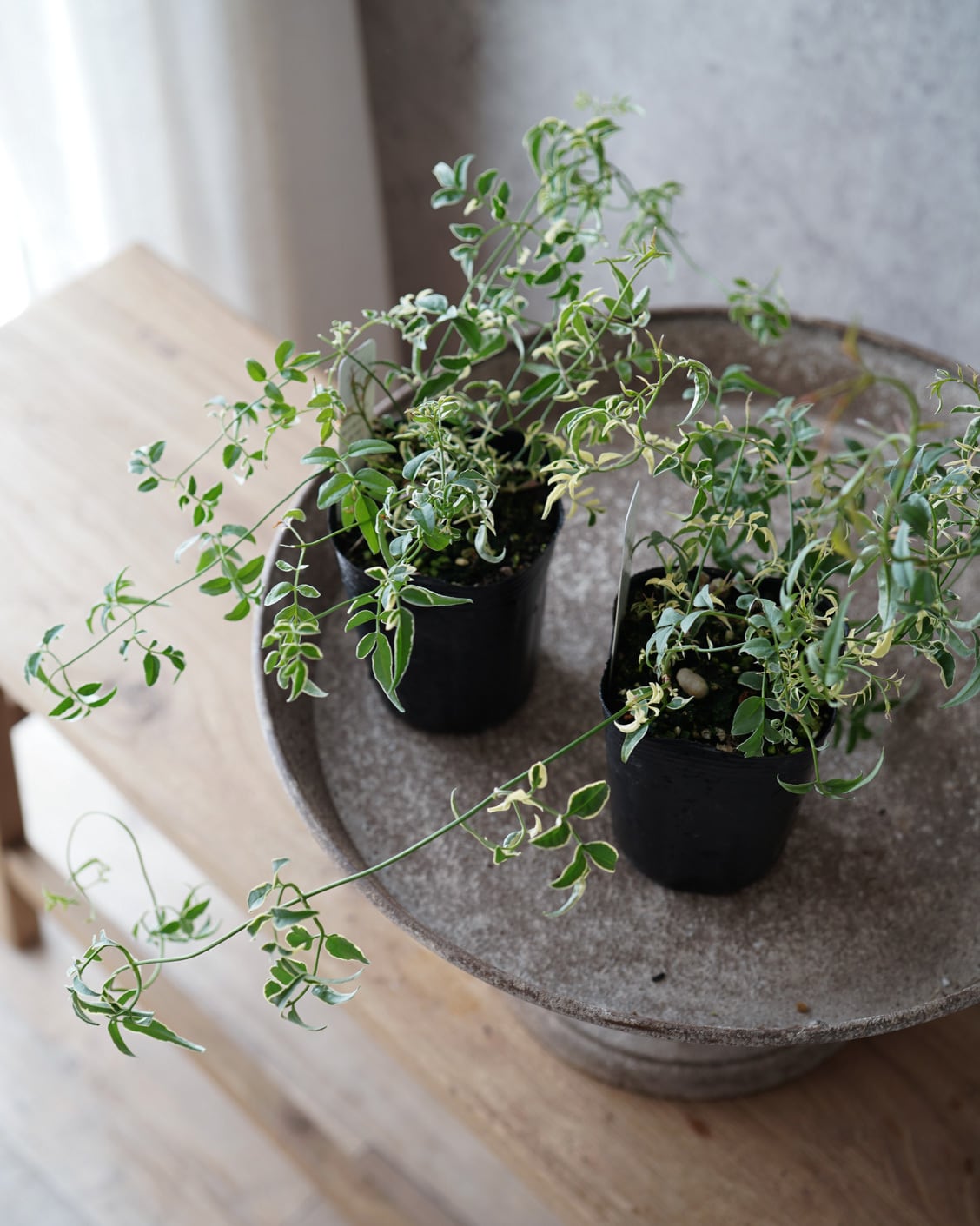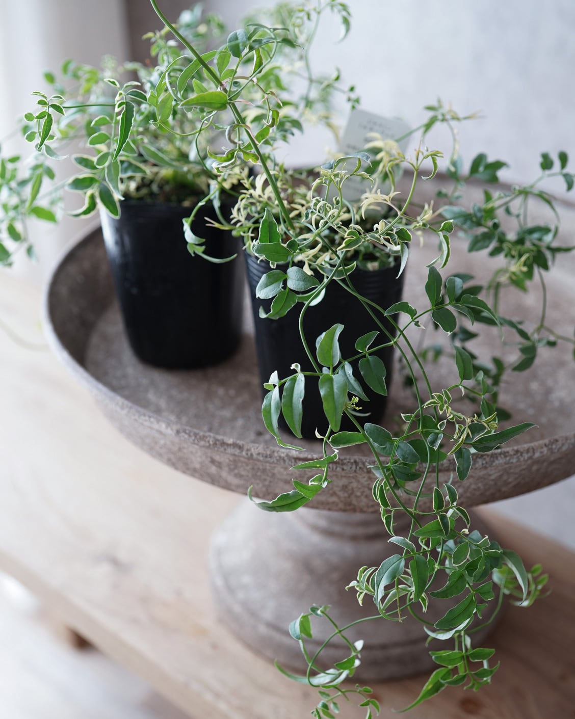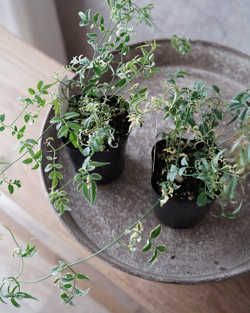 僅かにカールした斑入りの葉がオシャレな寄せ植えの強い味方。