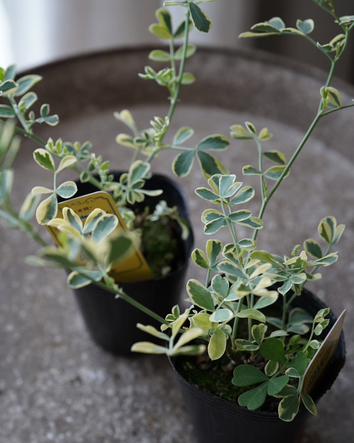 黄色い縁取りの丸いリーフが植え込みのアクセントに活躍。