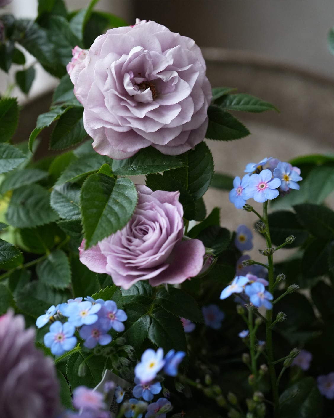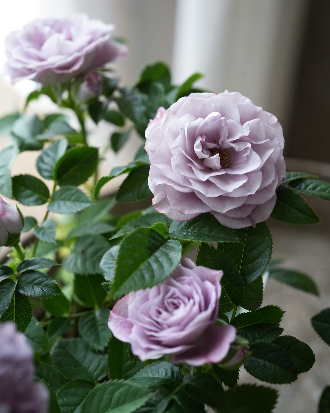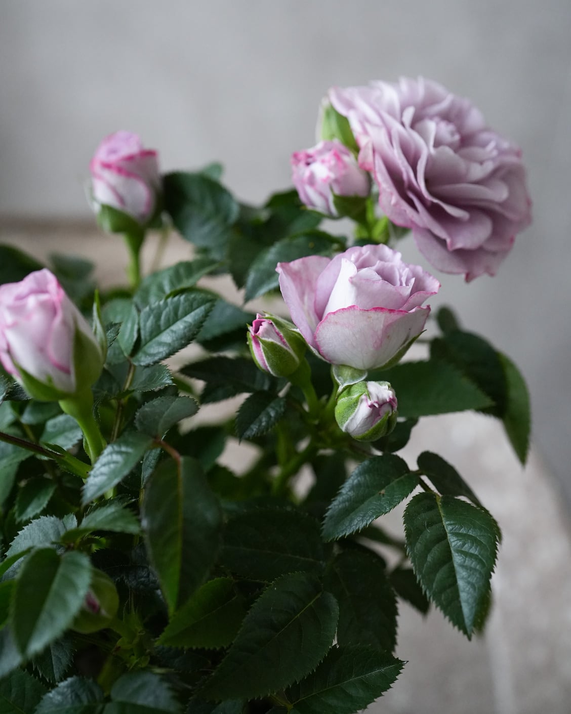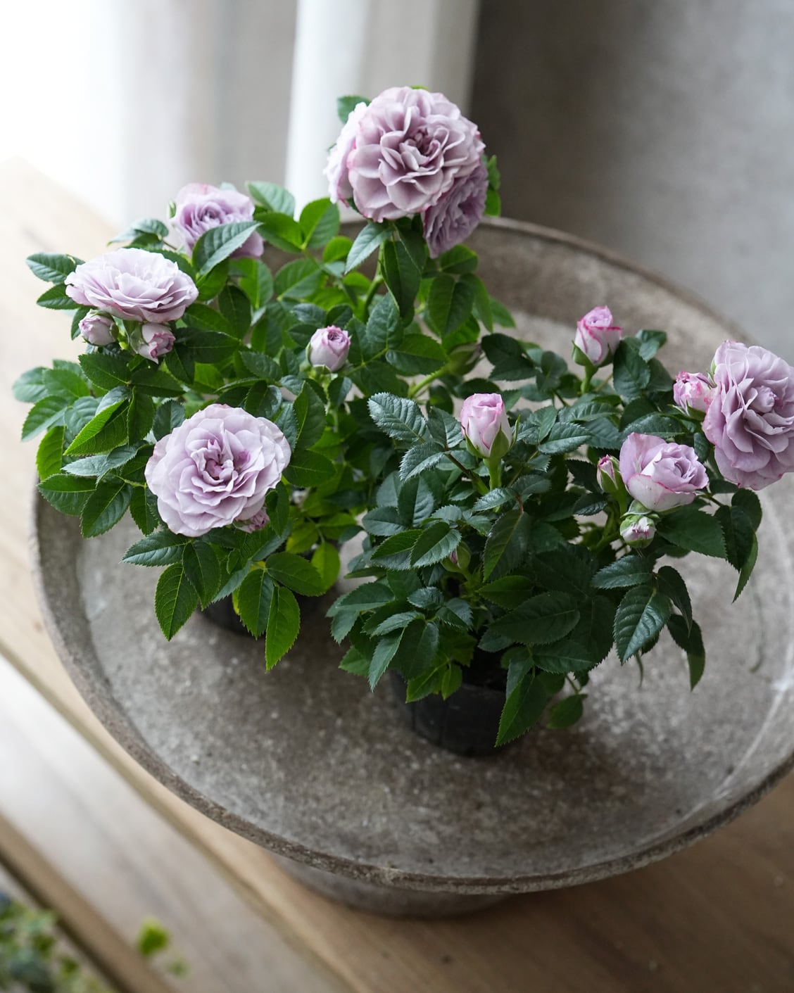 ラベンダー色が美しいミニバラ。