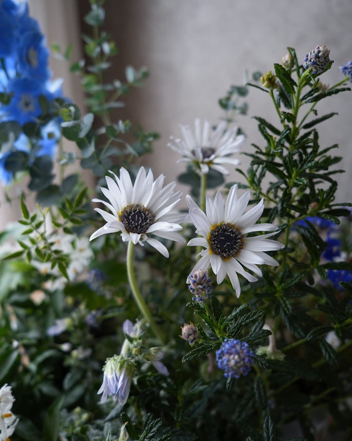 春、日差しが強くなったら、午後からは半日陰になるような場所の方が水切れを防ぎ、長持ちします。明るい半日陰でも十分育ちます。