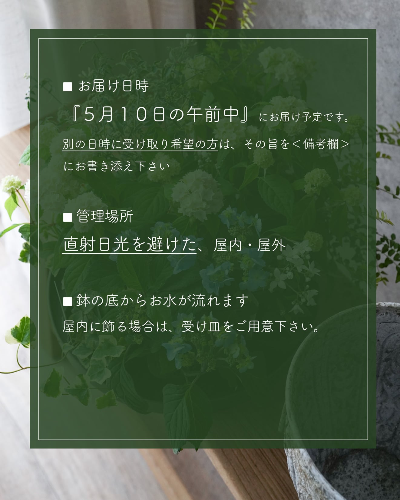 (屋内に飾る場合は、受け皿をご用意ください。)