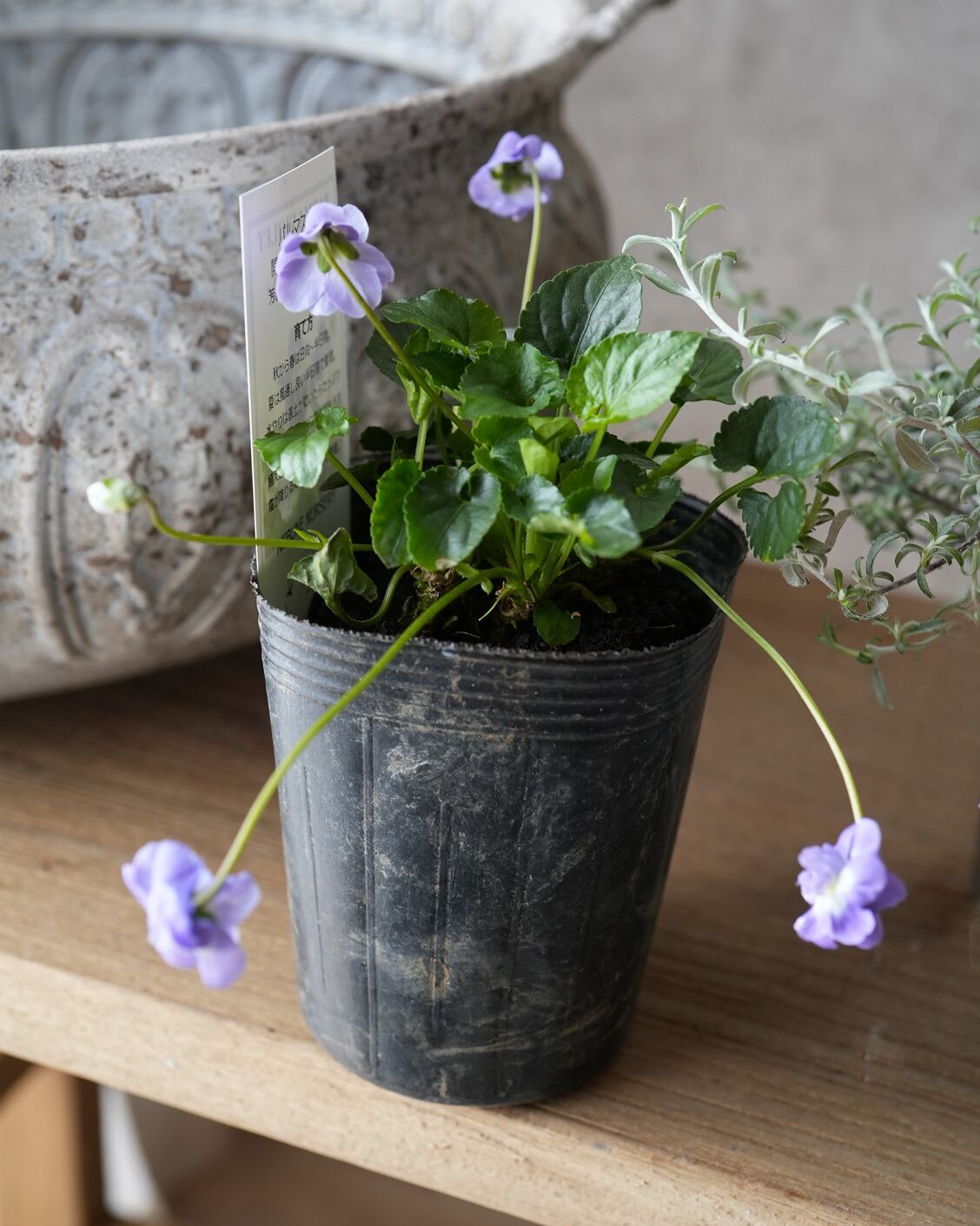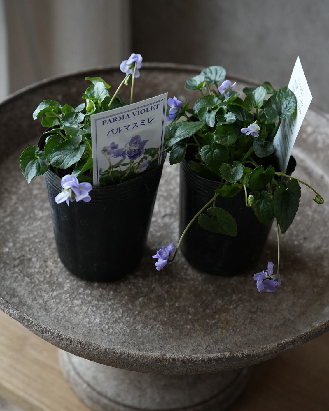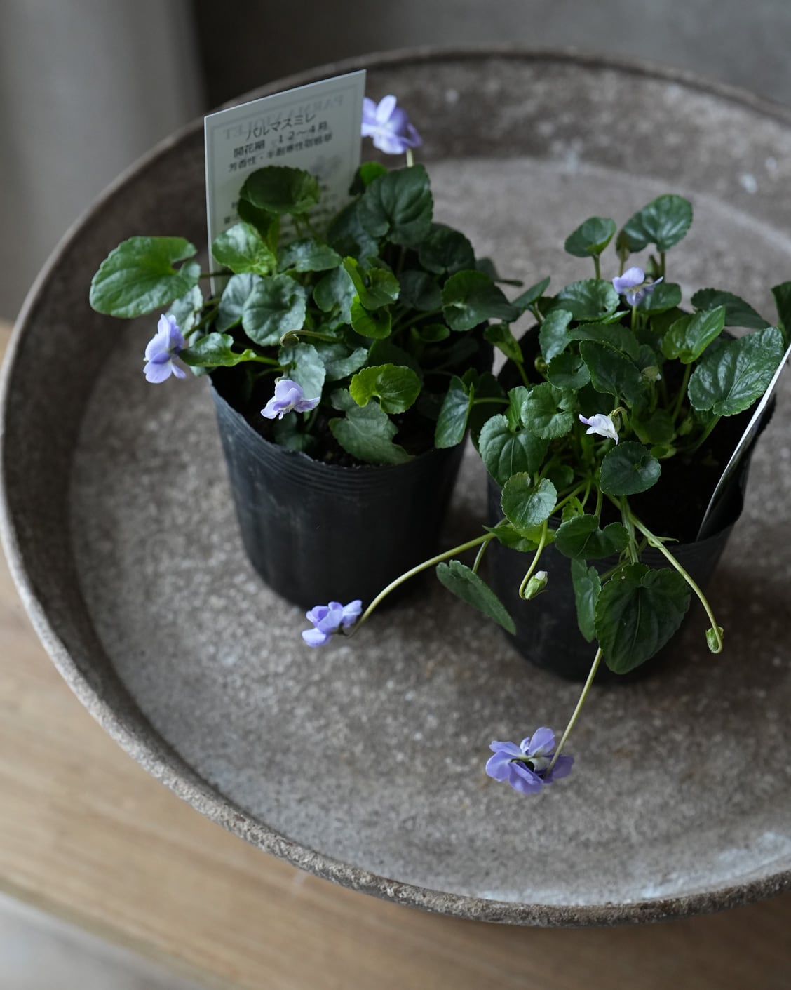 八重咲きの花が垂れ下がるように咲くスミレ。