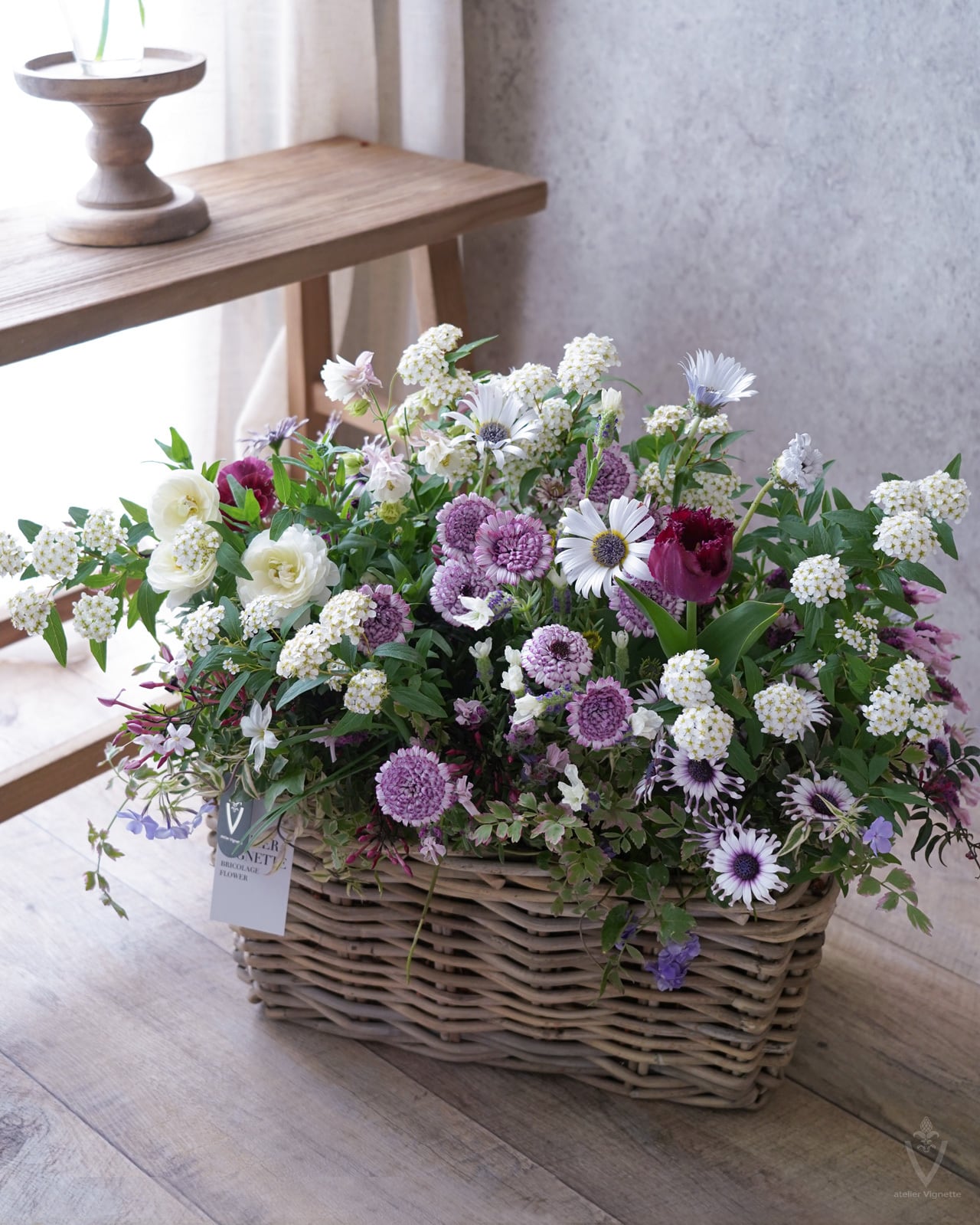 どんな花材や空間にも合わせやすいバスケットです。