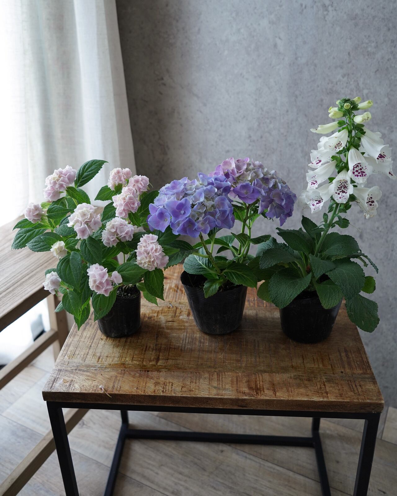 丈短いアジサイ ×3(2輪咲き)※色には個体差があります。
