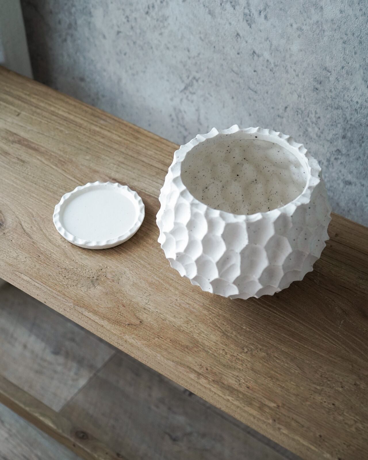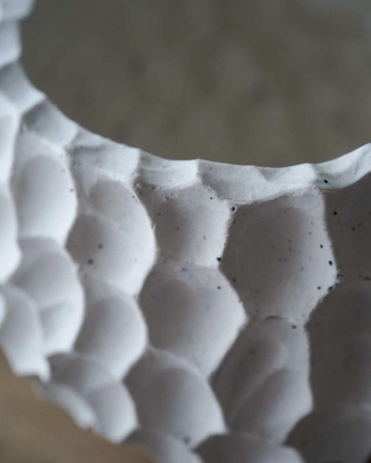 白い表面に、素朴な陶土の質感が所々浮き出ています(アップの写真参照)