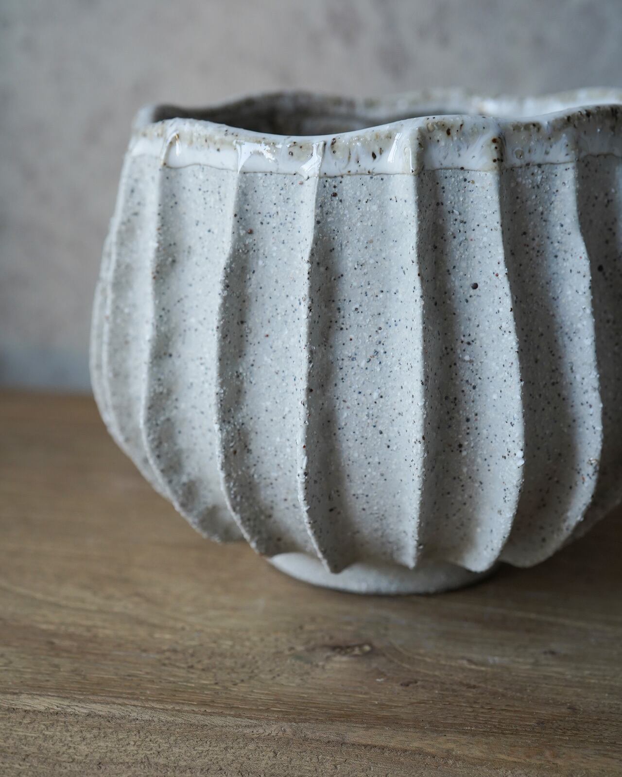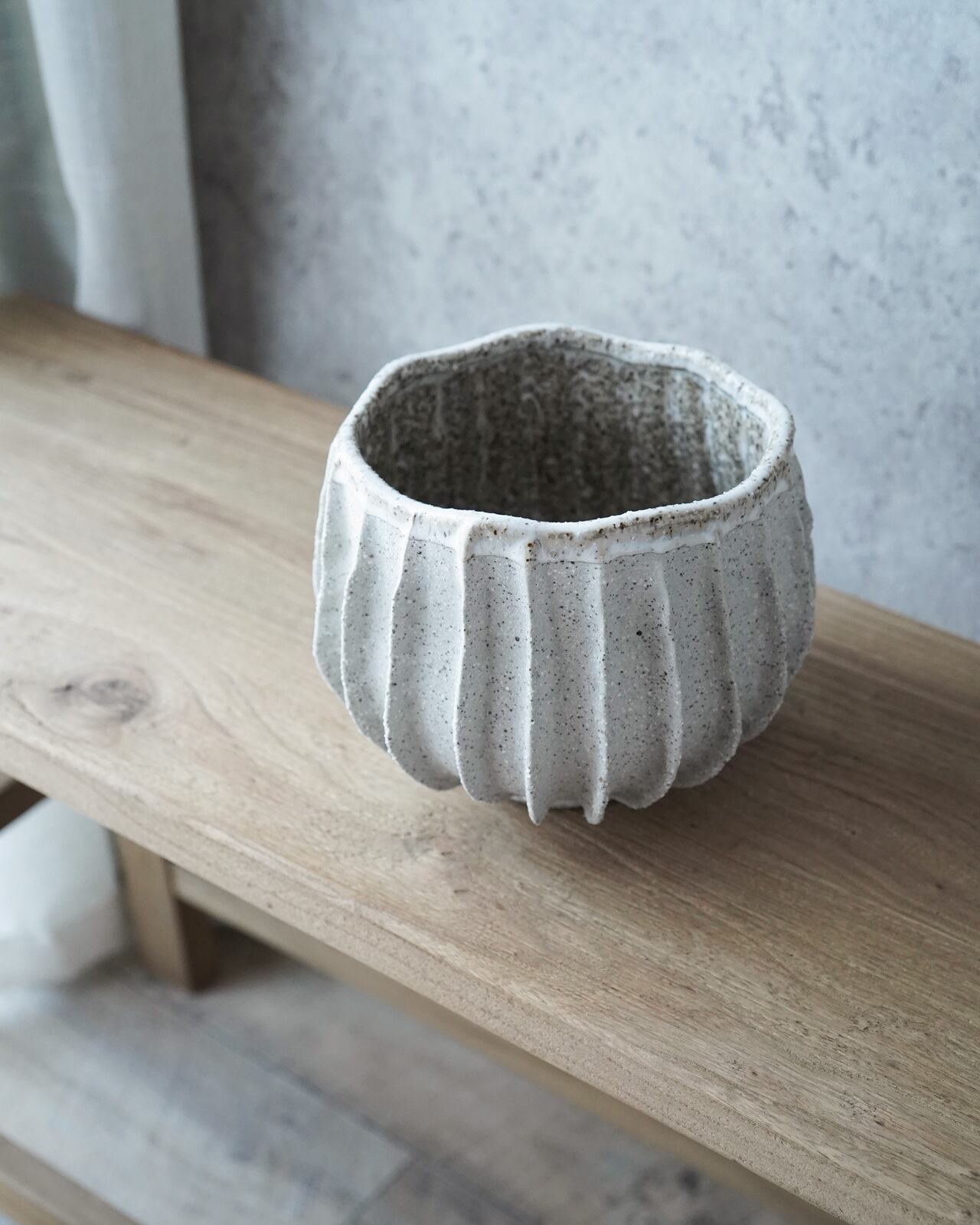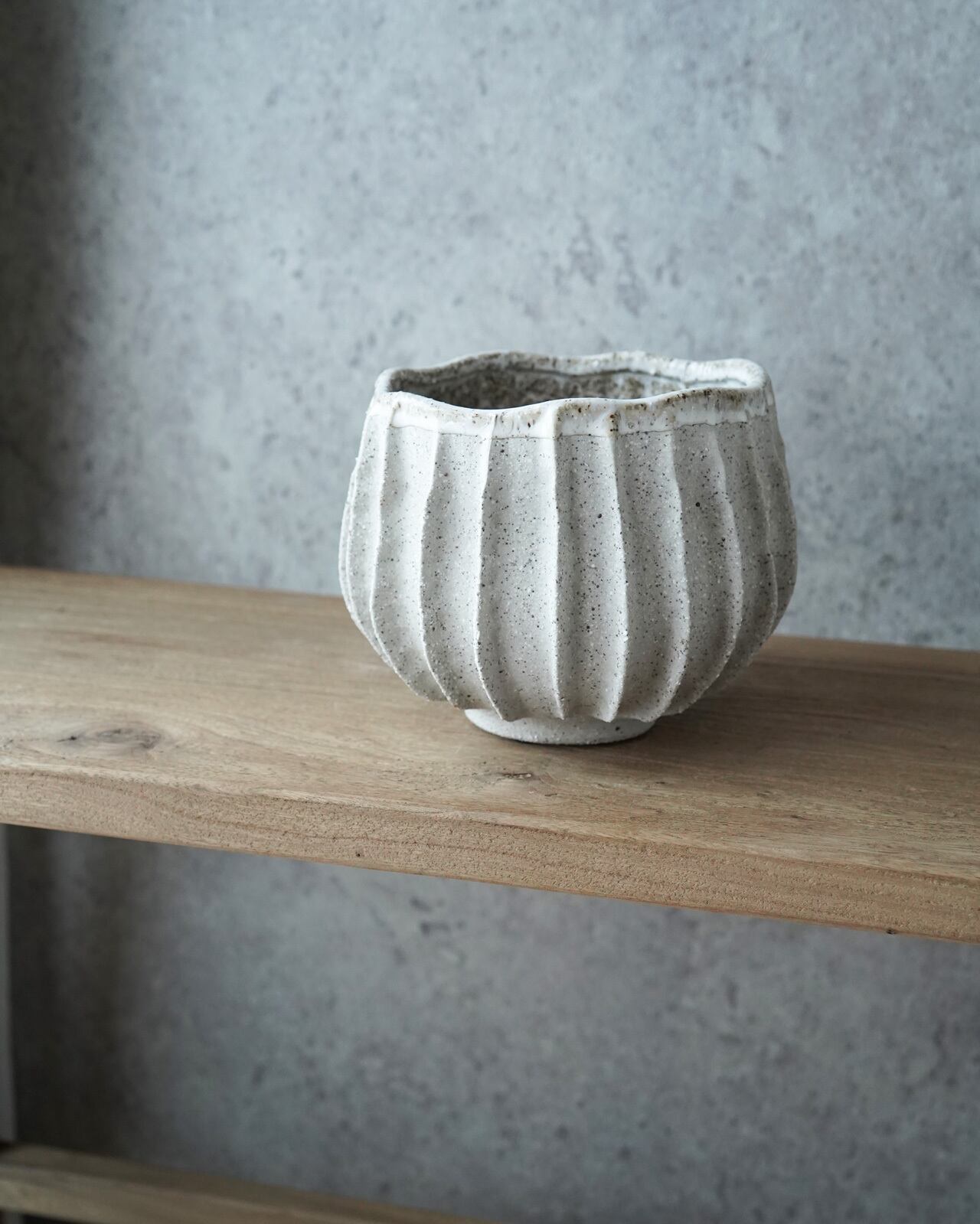 波立つようなヒダが印象的な鉢。 鉢カバー。