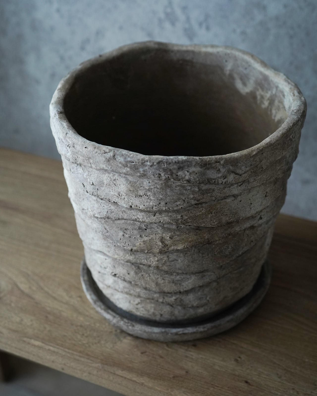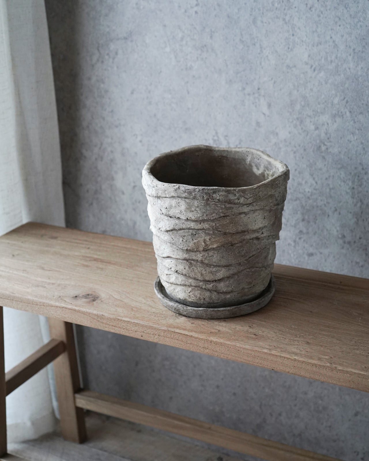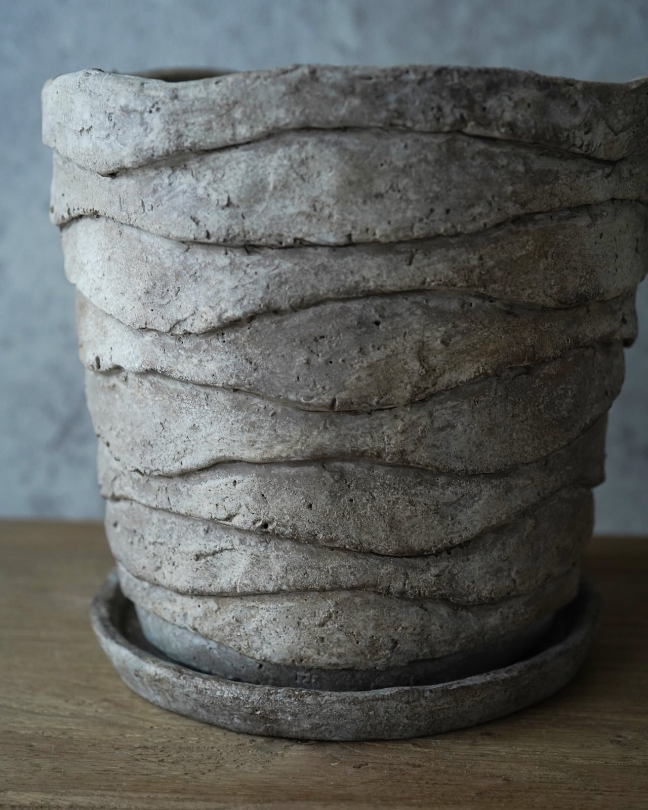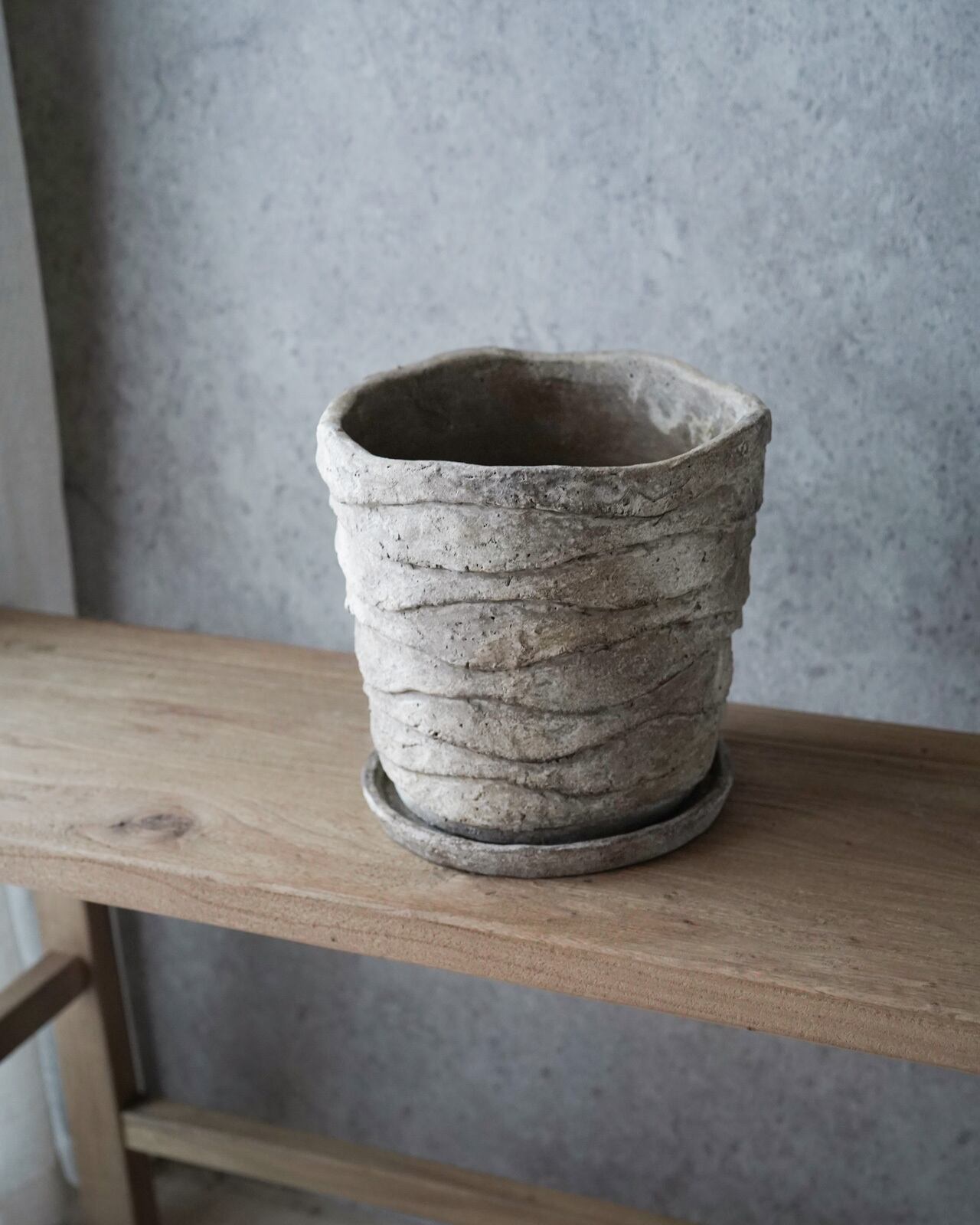地層のようなデザインが独特の鉢。