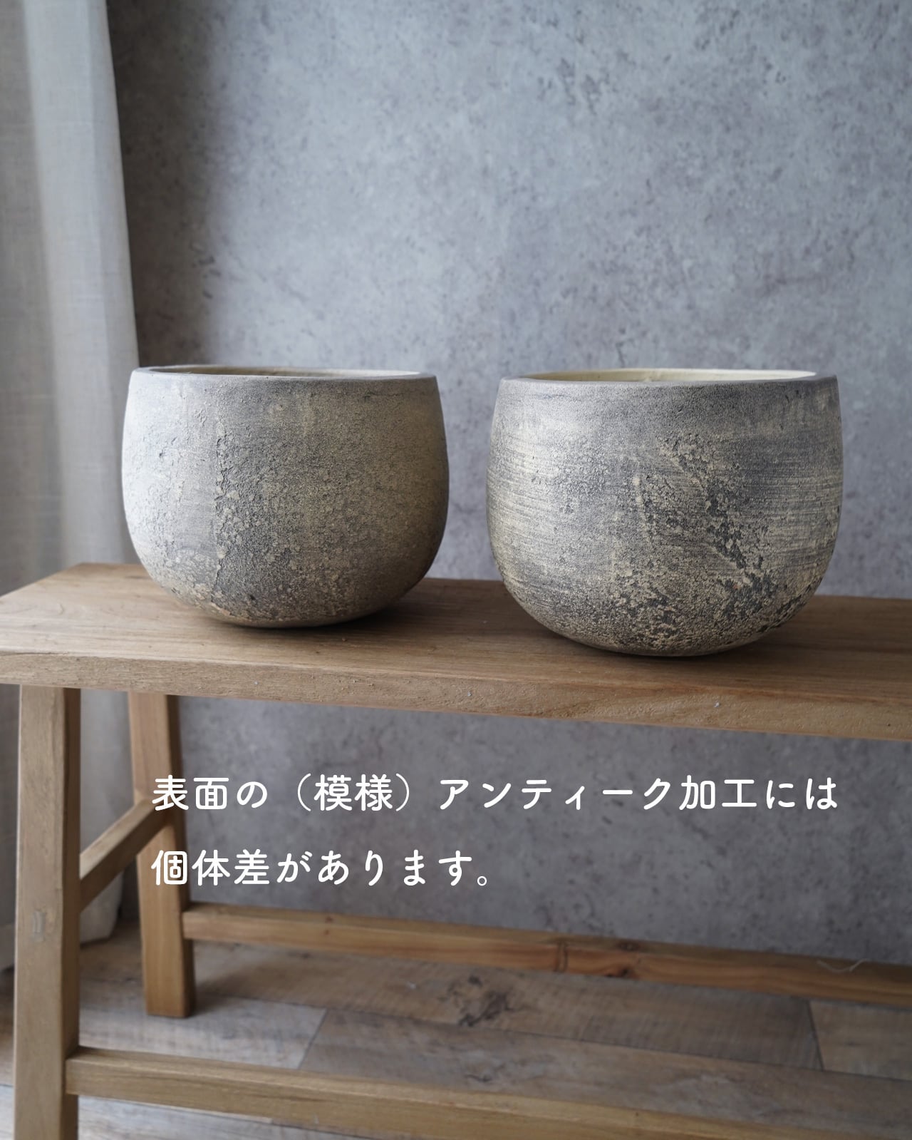 表面をアンティーク仕上げに施し、自然な風合いが魅力のテラコッタ鉢。