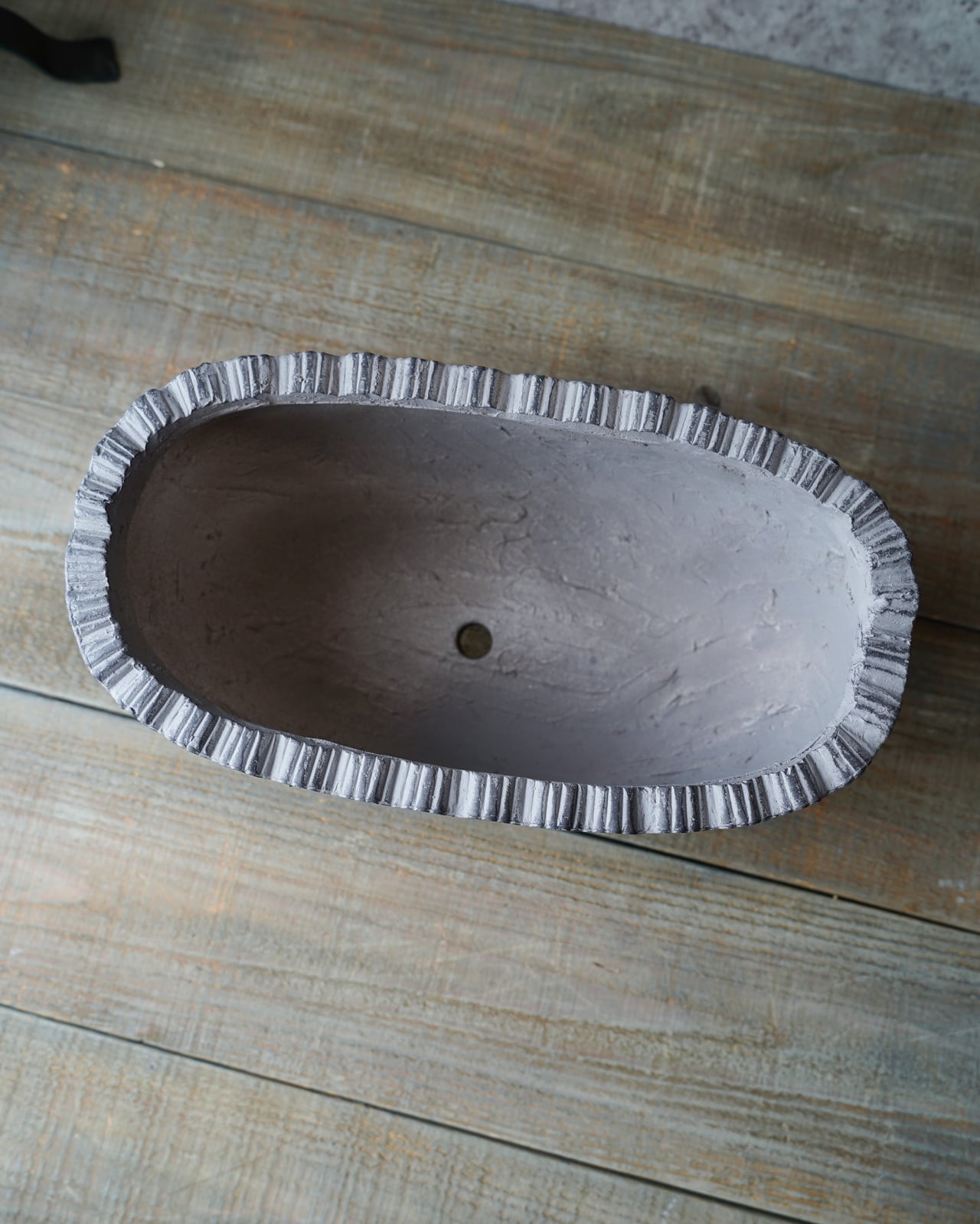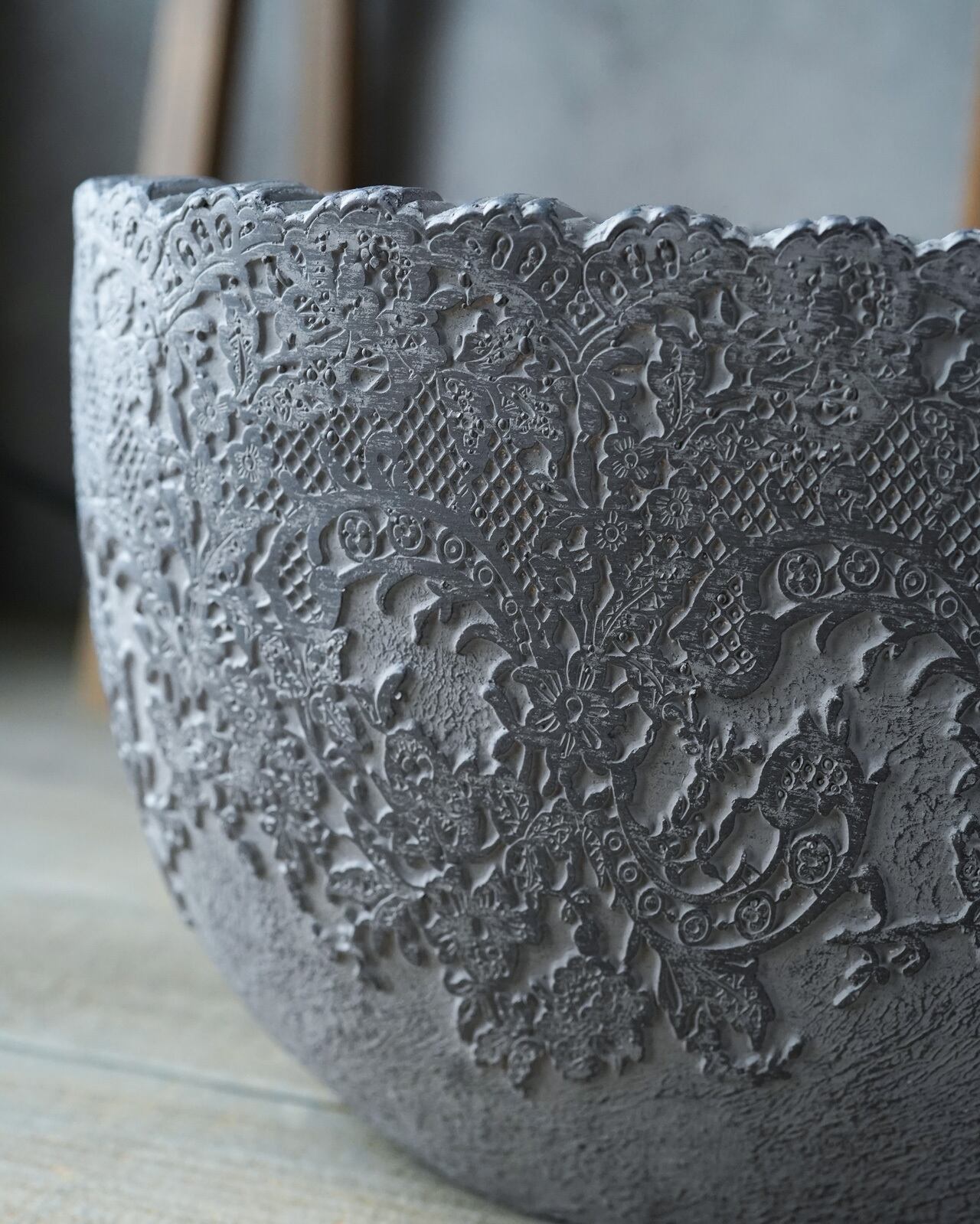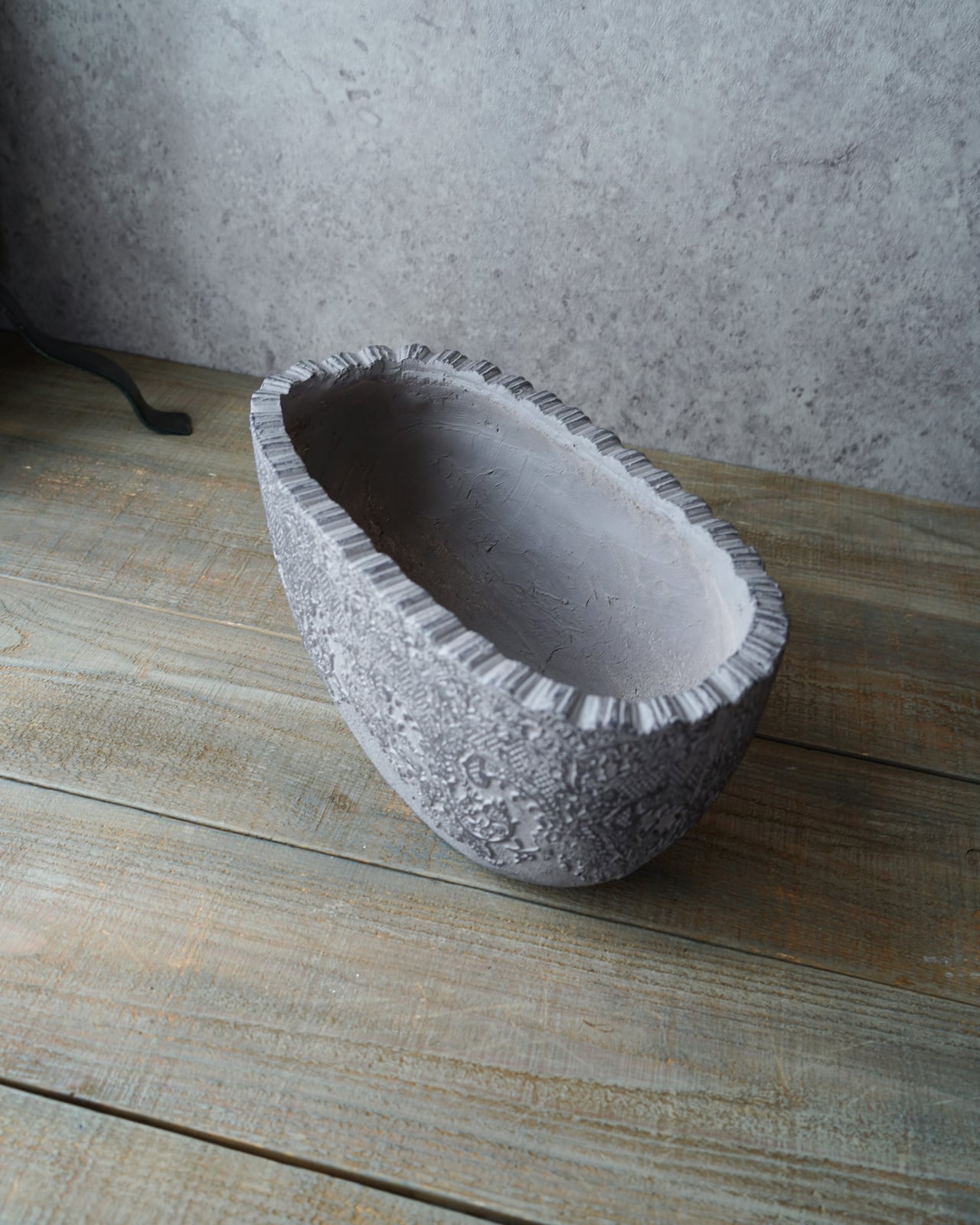 鉢間口のレース状の切れ込みがオシャレなシリンダー型の植木鉢です。