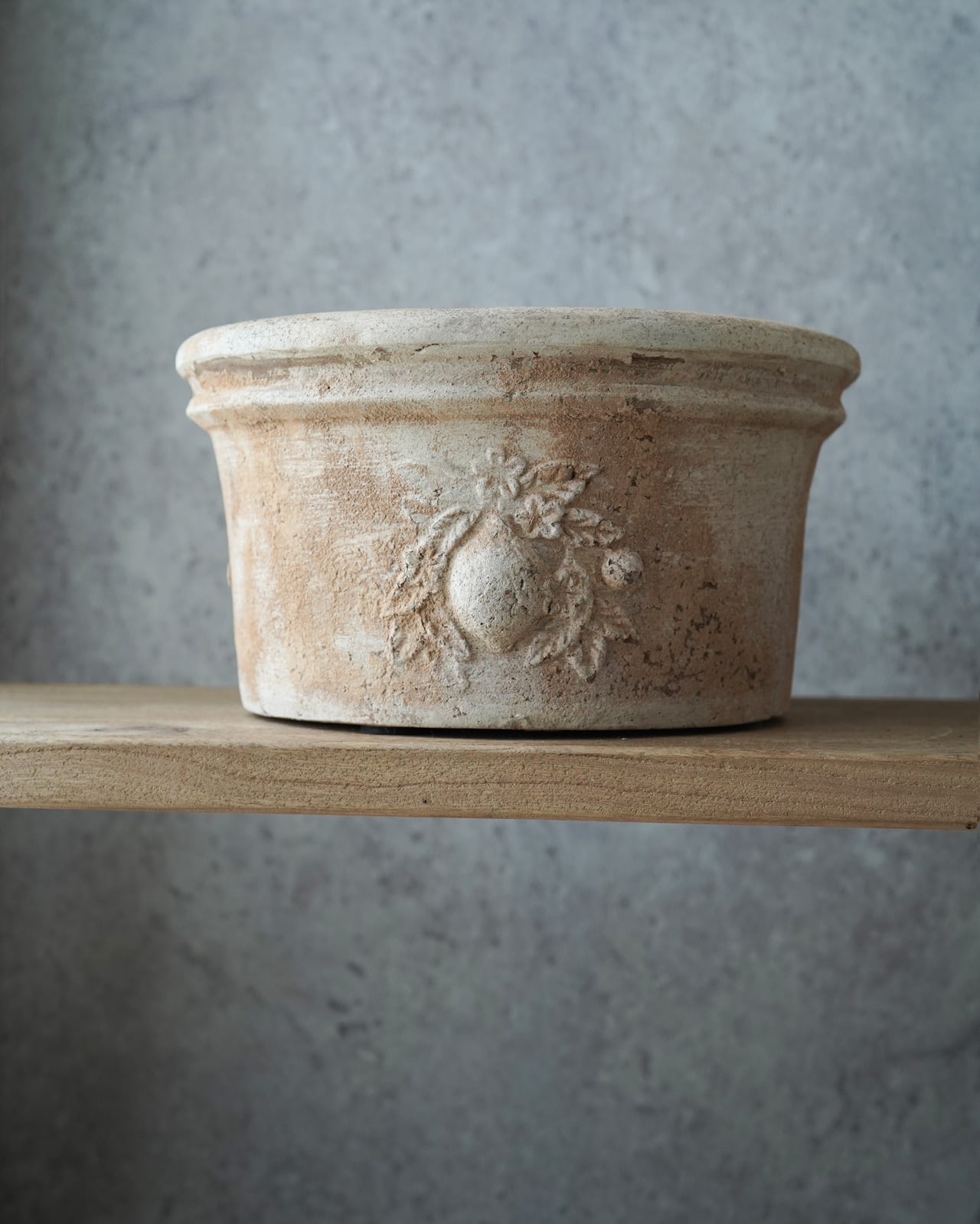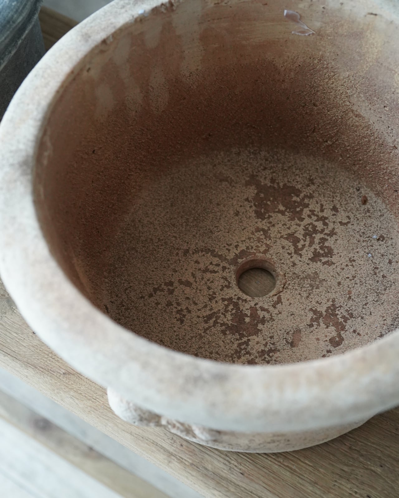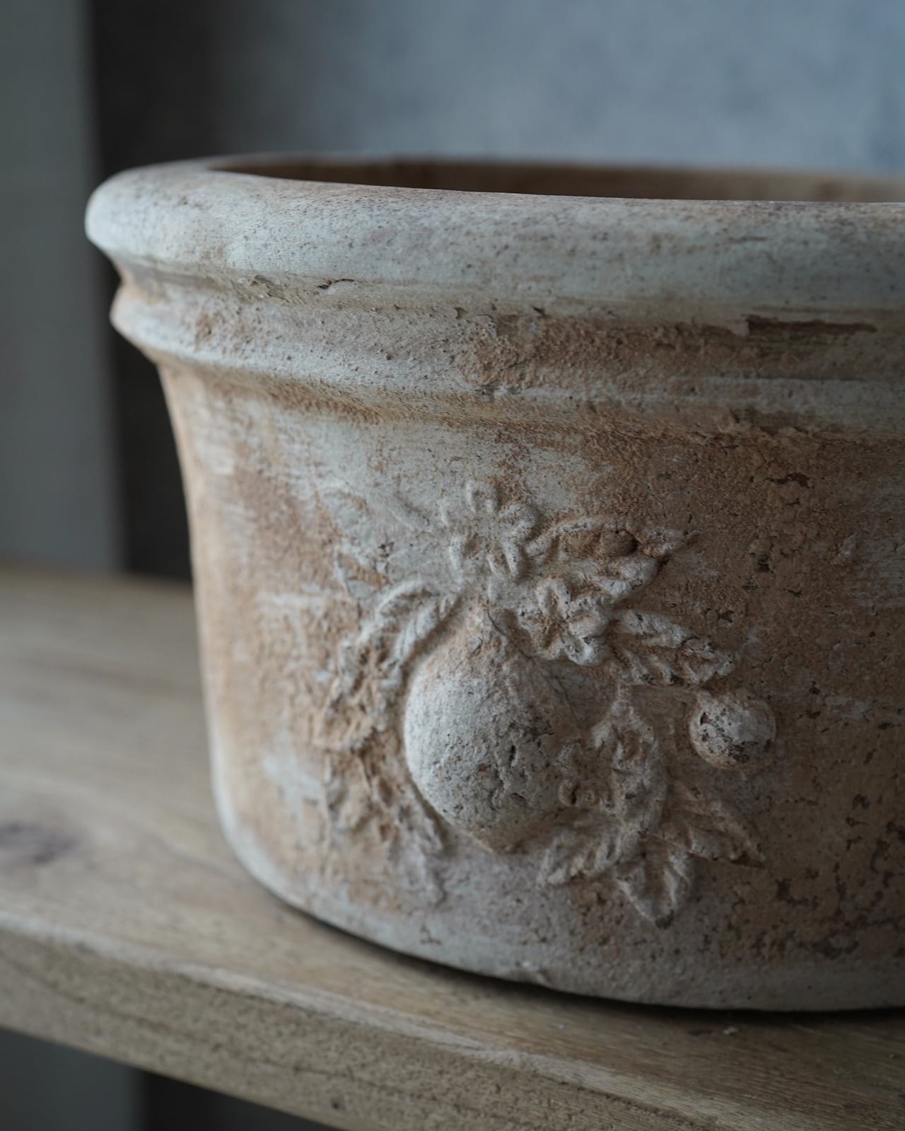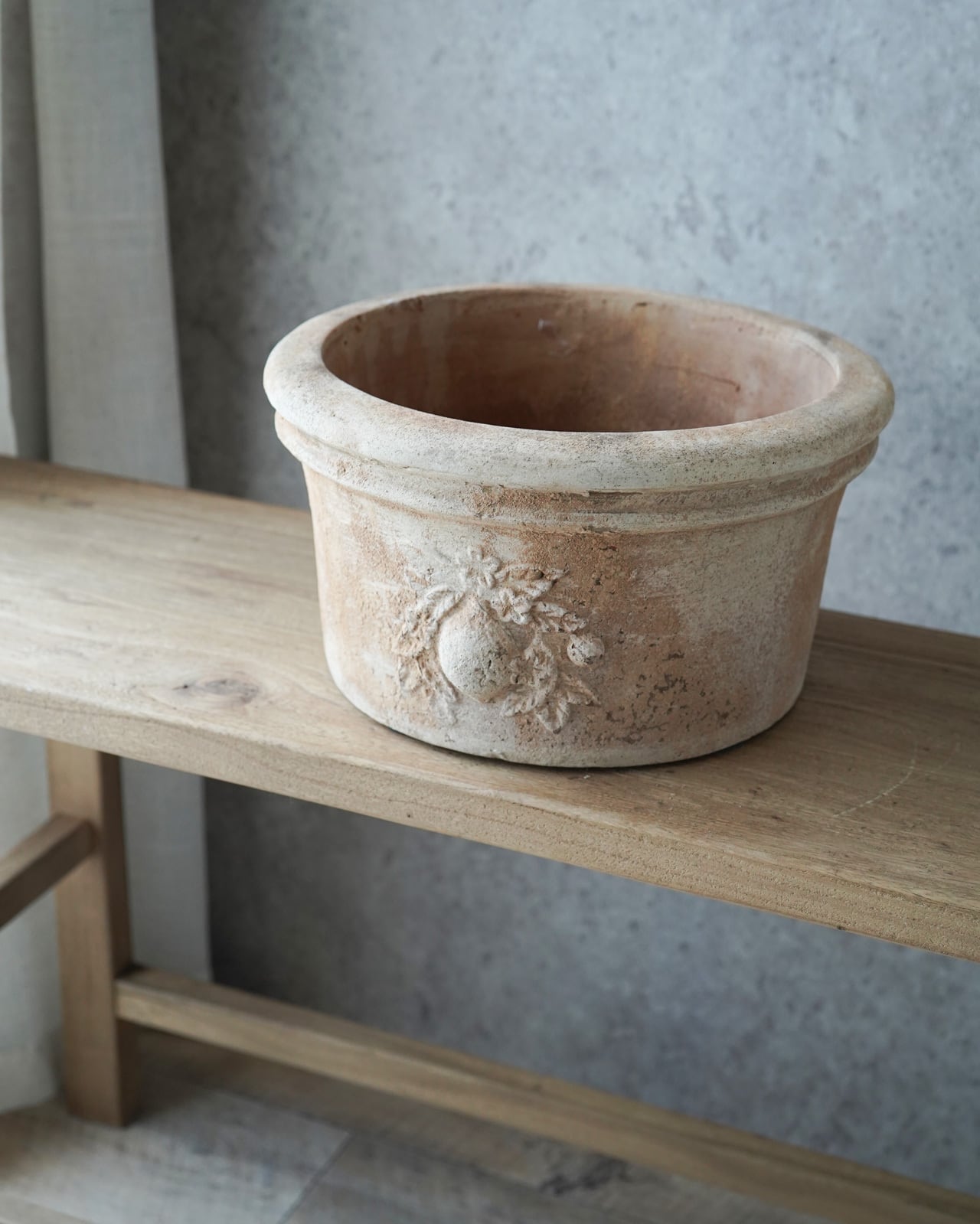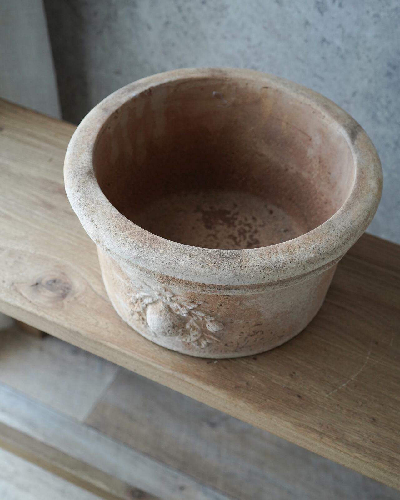 表面のテラコッタの色むらが美しい、肉厚のテラコッタ鉢。