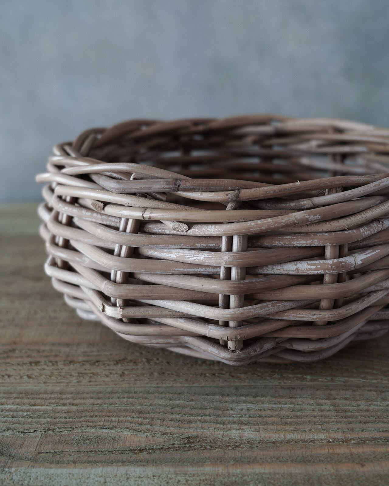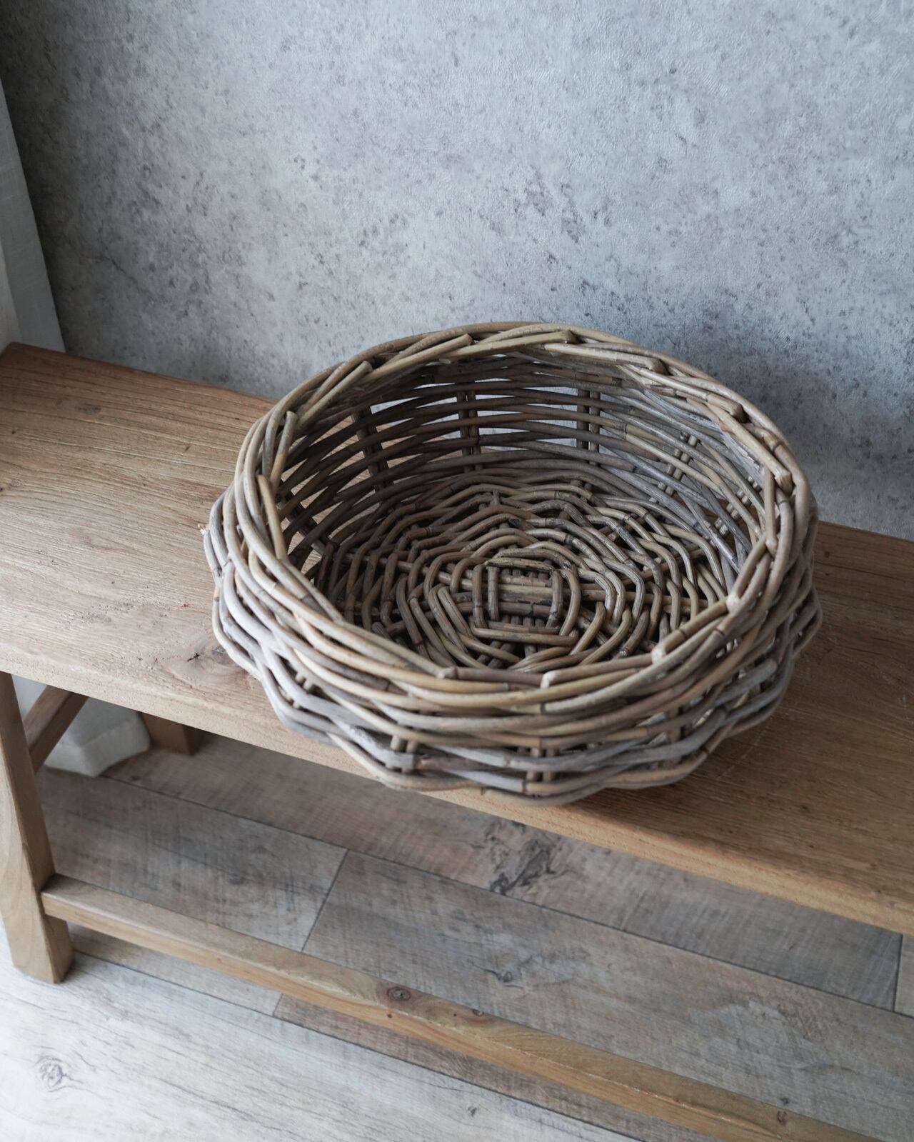 白ちゃけた色味の太めのラタンを編み上げたグレーラタンシリーズ。